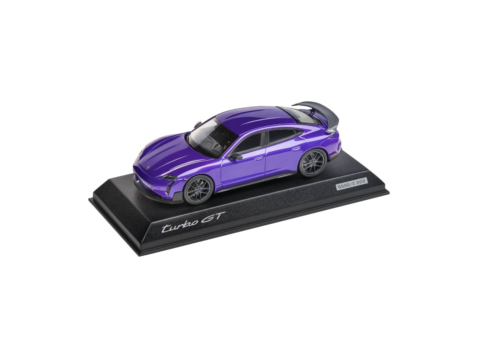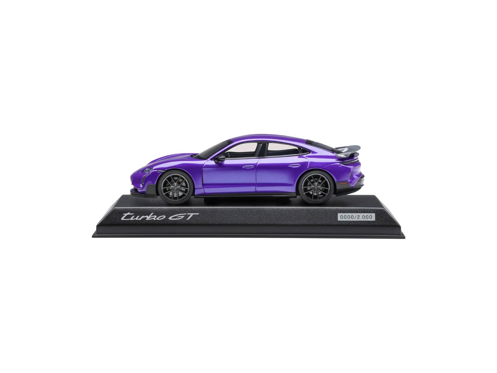Porta a casa il futuro delle prestazioni in miniatura con questo esclusivo modello pressofuso in scala 1:43 della Porsche Taycan Turbo GT. Rifinito in Purple Sky Metallic con interni neri e dotato del pacchetto Weissach, questo modello trasuda eleganza e DNA ad alte prestazioni.