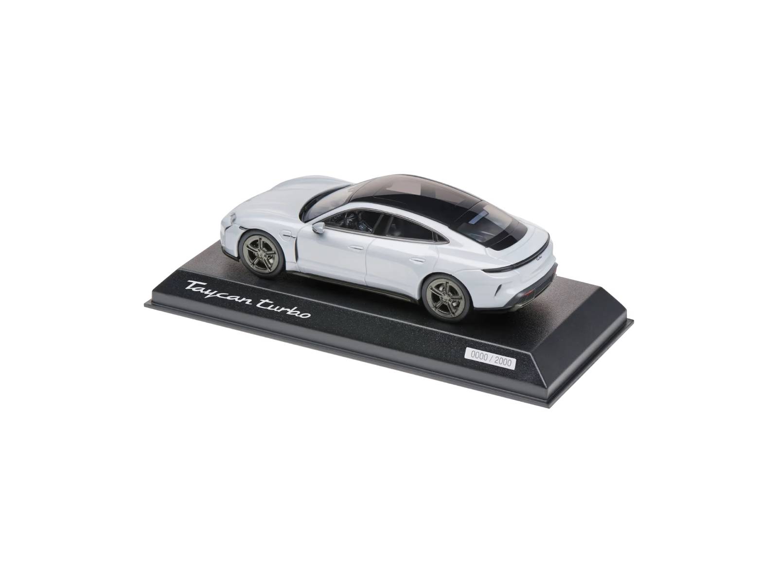 Scopri la tradizione delle prestazioni elettriche Porsche in miniatura con questa replica pressofusa in scala 1:43 estremamente dettagliata della Taycan Turbo (J1 PA). Caratterizzato da una finitura grigio ghiaccio metallizzato e interni neri, questo modello in edizione limitata cattura lo stile elegante e le linee decise dell'ammiraglia elettrica Porsche.
