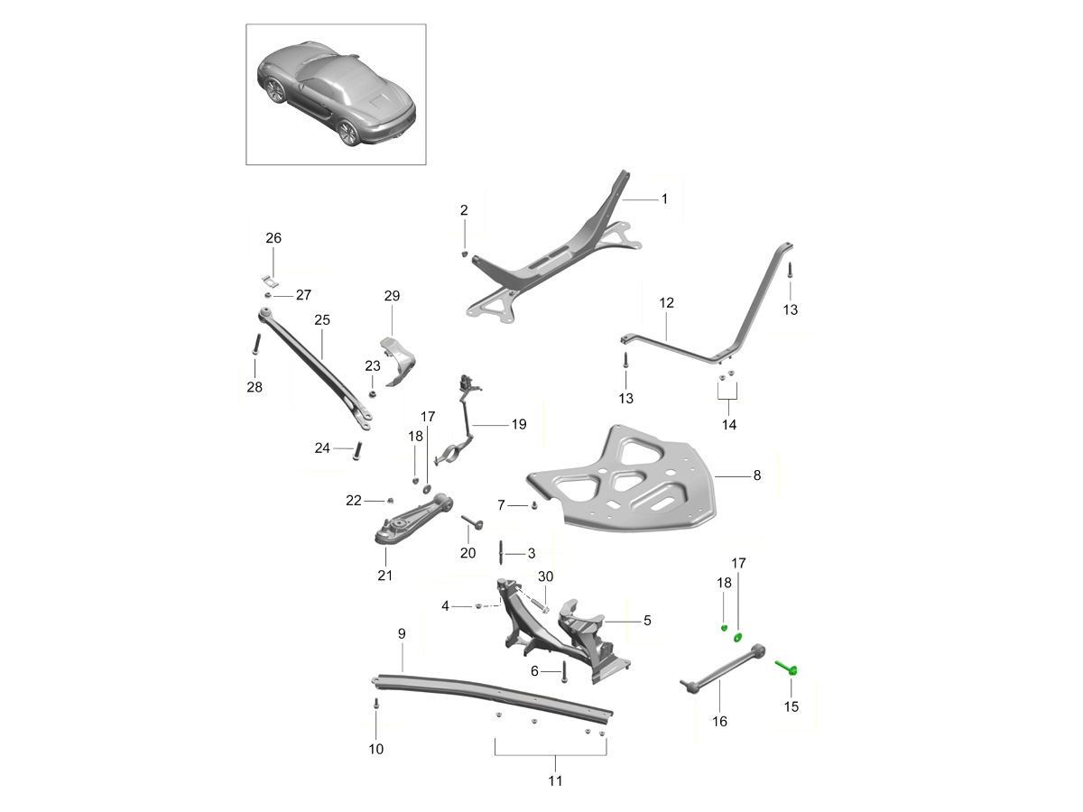 Asse posteriore / Parte laterale / Portapacchi / Guida 718 (982) Boxster 2017>> 501-001