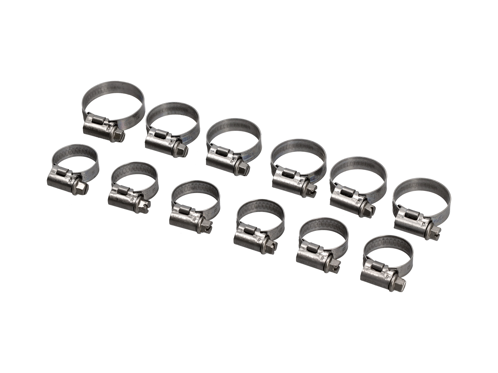De set bevat alle benodigde slangklemmen om de gespecificeerde slangenset te installeren. De meegeleverde klemmen zijn van een hoogwaardig standaardontwerptype in volledig roestvrij staal (W4-klasse) met een gestempelde band om de impact op het slangoppervlak te minimaliseren.