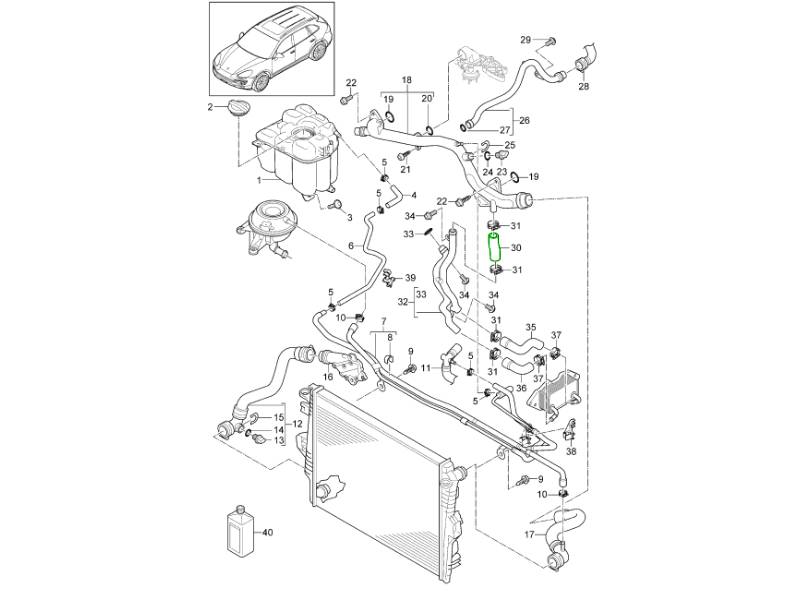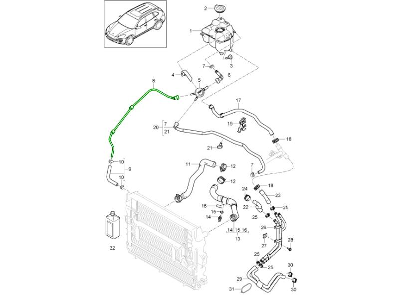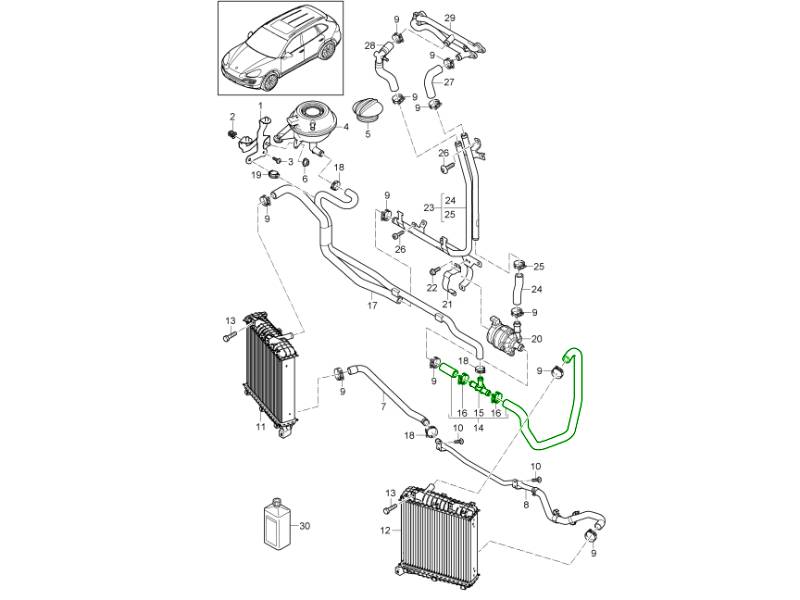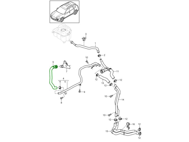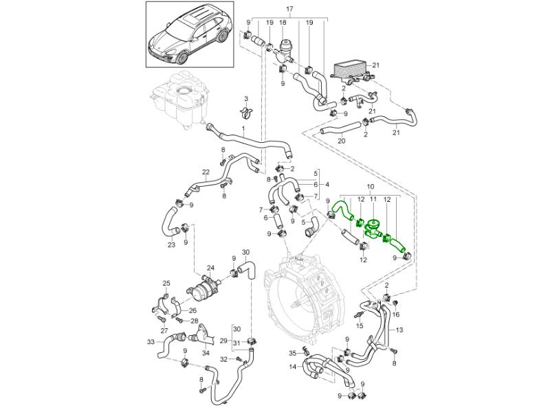 De koelvloeistofslang met ventiel is een origineel Porsche-onderdeel van het koelsysteem, ontworpen om de koelvloeistofstroom door het motorkoelcircuit te regelen en te sturen. Deze slang bevat een geïntegreerd ventiel, waardoor een gereguleerde koelvloeistofcirculatie mogelijk is, afhankelijk van de motortemperatuur en de systeembehoefte.