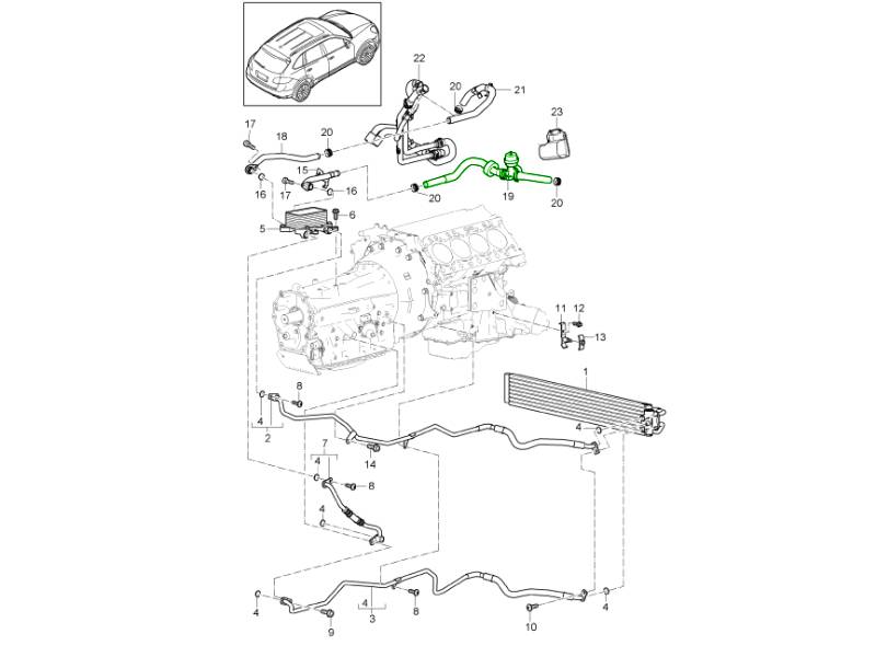 De Tiptronic-koelvloeistofslang met verwarmingsventiel is een origineel Porsche-onderdeel van het koelsysteem, ontworpen om de koelvloeistoftoevoer naar de Tiptronic-automatische transmissie te regelen. Deze slang is voorzien van een geïntegreerd verwarmingsventiel, waardoor een gecontroleerde koelvloeistofstroom mogelijk is voor een optimale temperatuurregeling van de transmissie.