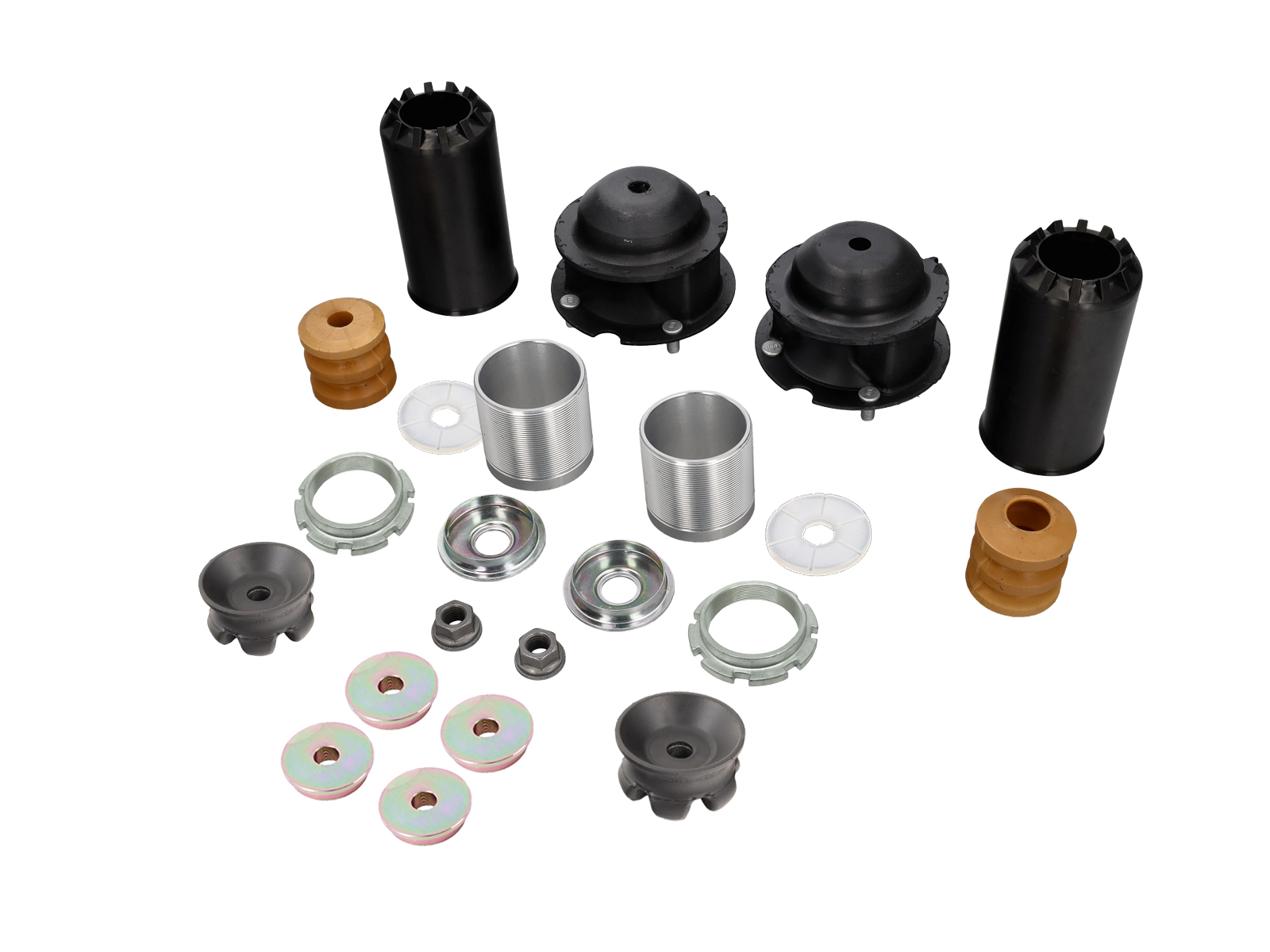 Wat dit product doet: Deze set biedt de bovenste bevestigingsinterface aan de achterzijde tussen de schokdemper en de carrosserie. Dit helpt de schokdemper stevig te positioneren en de ophangingsbelasting aan de achterkant van de auto te ondersteunen. Correcte bevestigingen dragen bij aan een consistente geometrie en kunnen ongewenste geluiden uit het achterwielophangingsgebied verminderen.