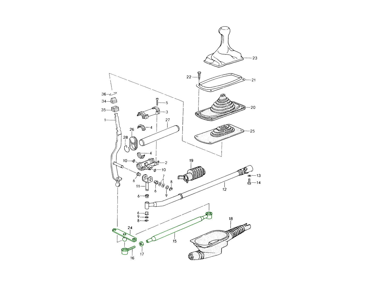 Een complete OE Match reparatieset, ontworpen om de transmissiegeleidingsbuis en het schakelstangmechanisme te herstellen, waardoor nauwkeurige versnellingskeuze en verbeterde rijprestaties worden gegarandeerd in Porsche 964 en 993 Carrera 2 modellen.
