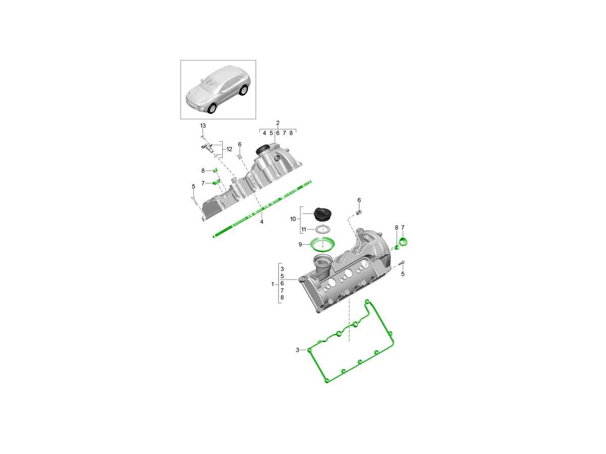 Deze complete nokkenasdekselpakkingenset is ontworpen voor Porsche V6-dieselmotoren in de 958 Cayenne, 970 Panamera en 95B Macan. De set bevat alle essentiële afdichtingen en onderdelen die nodig zijn om de nokkenasdeksels en bijbehorende onderdelen correct af te dichten, waardoor olielekkages worden voorkomen en de motor weer in goede staat wordt gebracht.