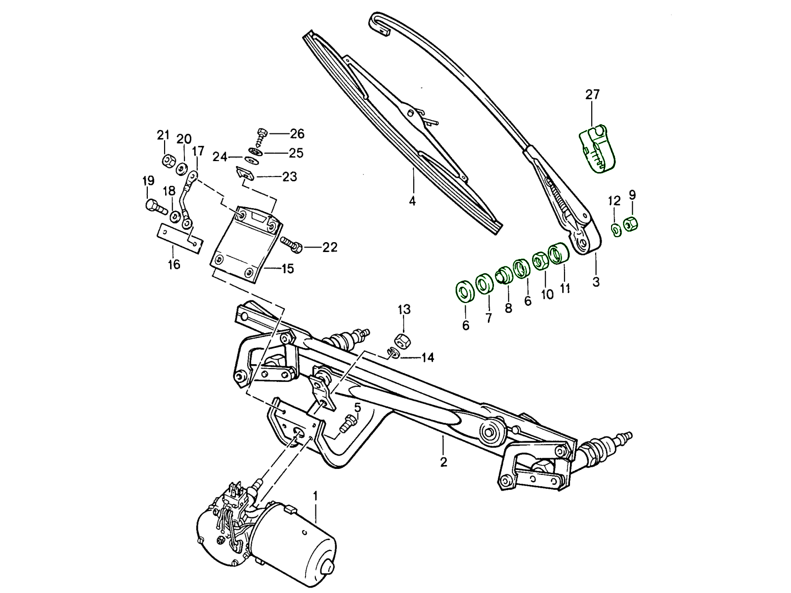 Deze set is ideaal voor restauratieprojecten, revisies op concoursniveau of routineonderhoud aan ruitenwisserarmen waarbij ontbrekende of beschadigde onderdelen vervangen moeten worden.