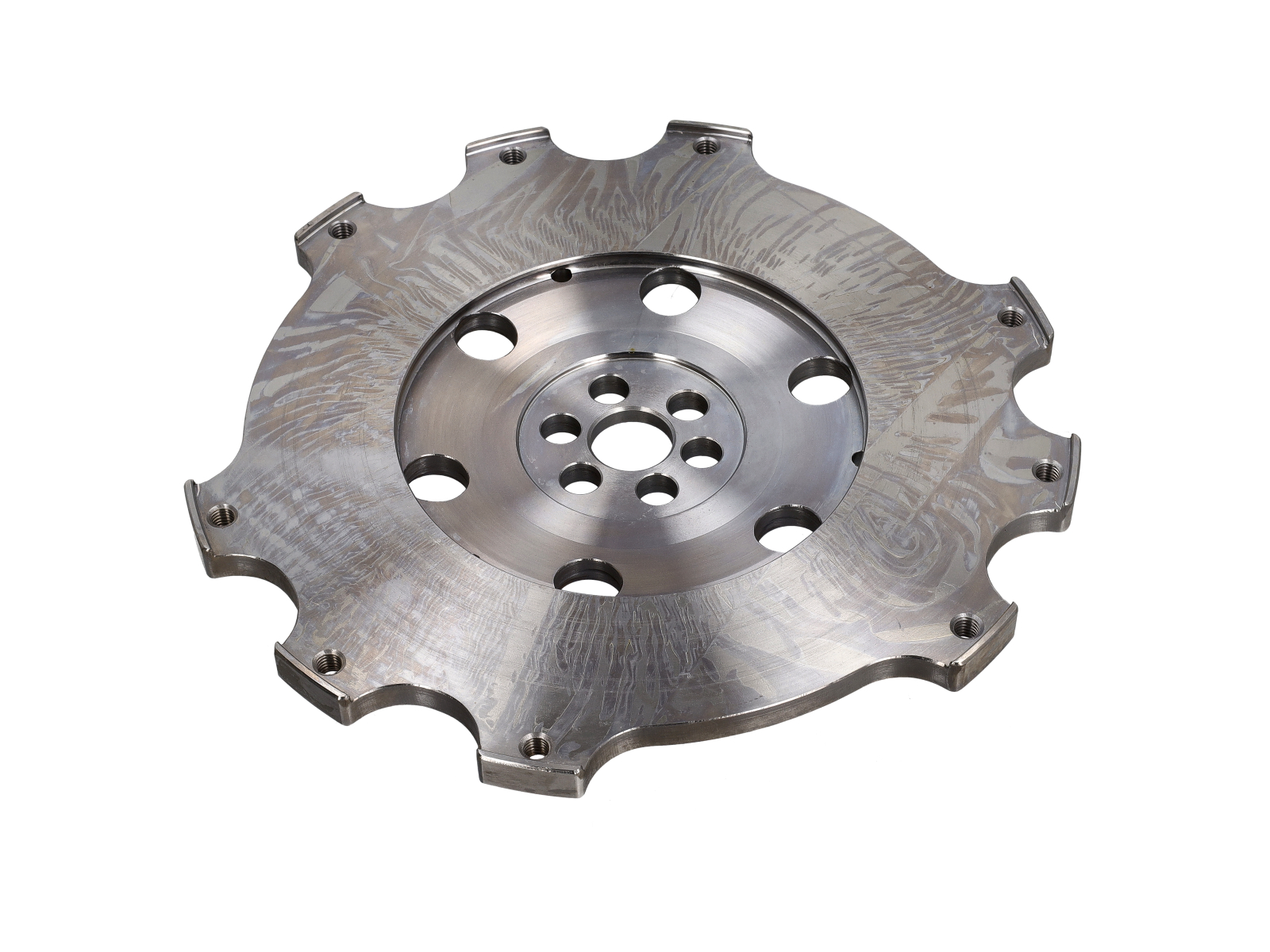 Het lichtgewicht koppelingsvliegwiel slaat rotatie-energie op en biedt het montageoppervlak voor de koppelingsdrukplaat en de frictieschijf. Door de lagere massa in vergelijking met zwaardere standaard exemplaren, verlaagt het de rotatietraagheid, waardoor de motor sneller accelereert en beter reageert.