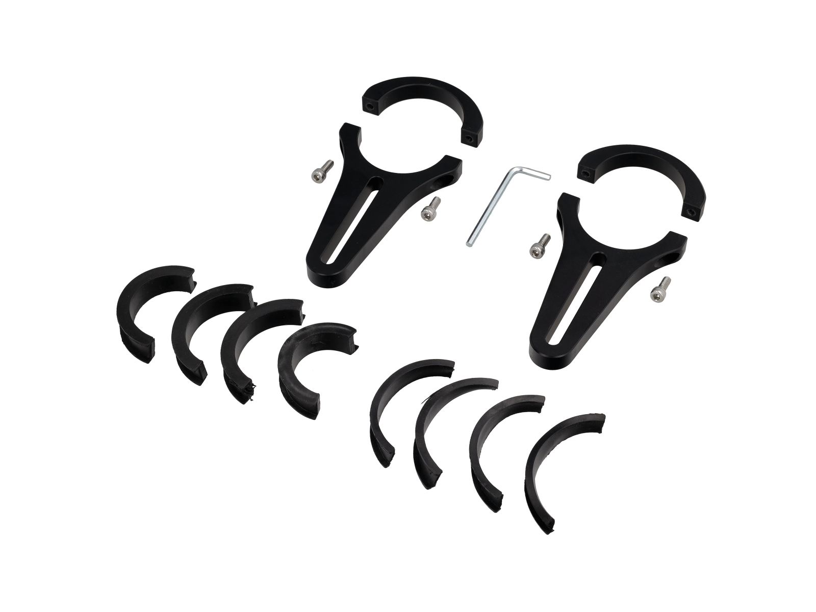 Verkrijgbaar voor rolkooistangen met een diameter van 1,5", 1,7", 1,75" of 2" (opties van 1,5" en 1,7" bevatten 1 pakje rubberen inzetstukken)