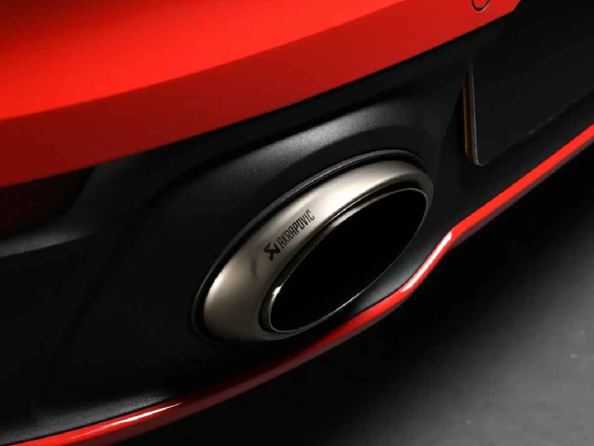 De uitlaatpijpen bevinden zich laag aan de zijkanten van de auto. Aan elke kant zit een uitlaat
