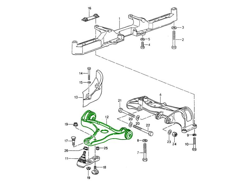 Porsche 994 1976-95 draagarmen voor, voorbus