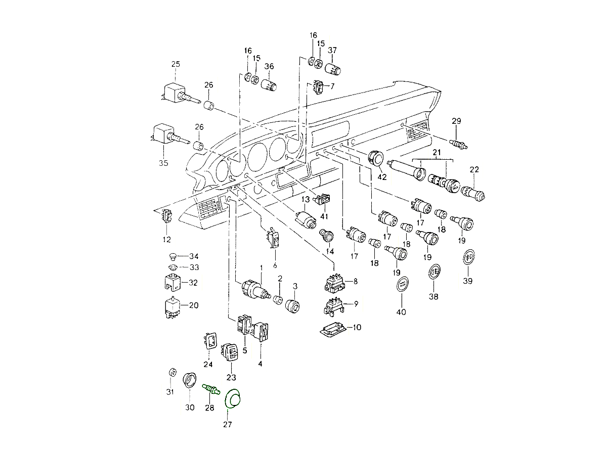 Deze set bevat vier componenten om de volledige functionaliteit van de interieurverlichting in uw Porsche coupé te herstellen: 2 x onderdeel 99361360200 (rubberen doppen voor de deurcontactschakelaar) en 2 x onderdeel 96461360102 (contactschakelaars voor de deur-/kofferbakverlichting). Met deze complete set behoudt u de juiste werking van de binnenverlichting, detectie van een openstaande deur en een nette afwerking - ideaal wanneer één of beide zijden van de schakelaars en afdekkingen van uw auto aan vervanging toe zijn.