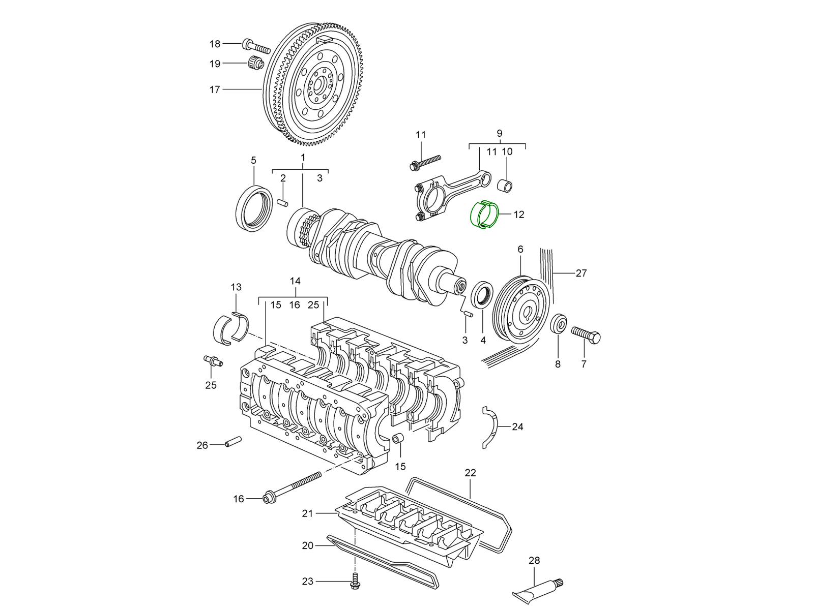 OE Match set van 12 drijfstanglagerschalen in standaardformaat, ontworpen ter vervanging van de originele drijfstanglagers van de Porsche Boxster 986/987, 911 996/997 en 987 Cayman.