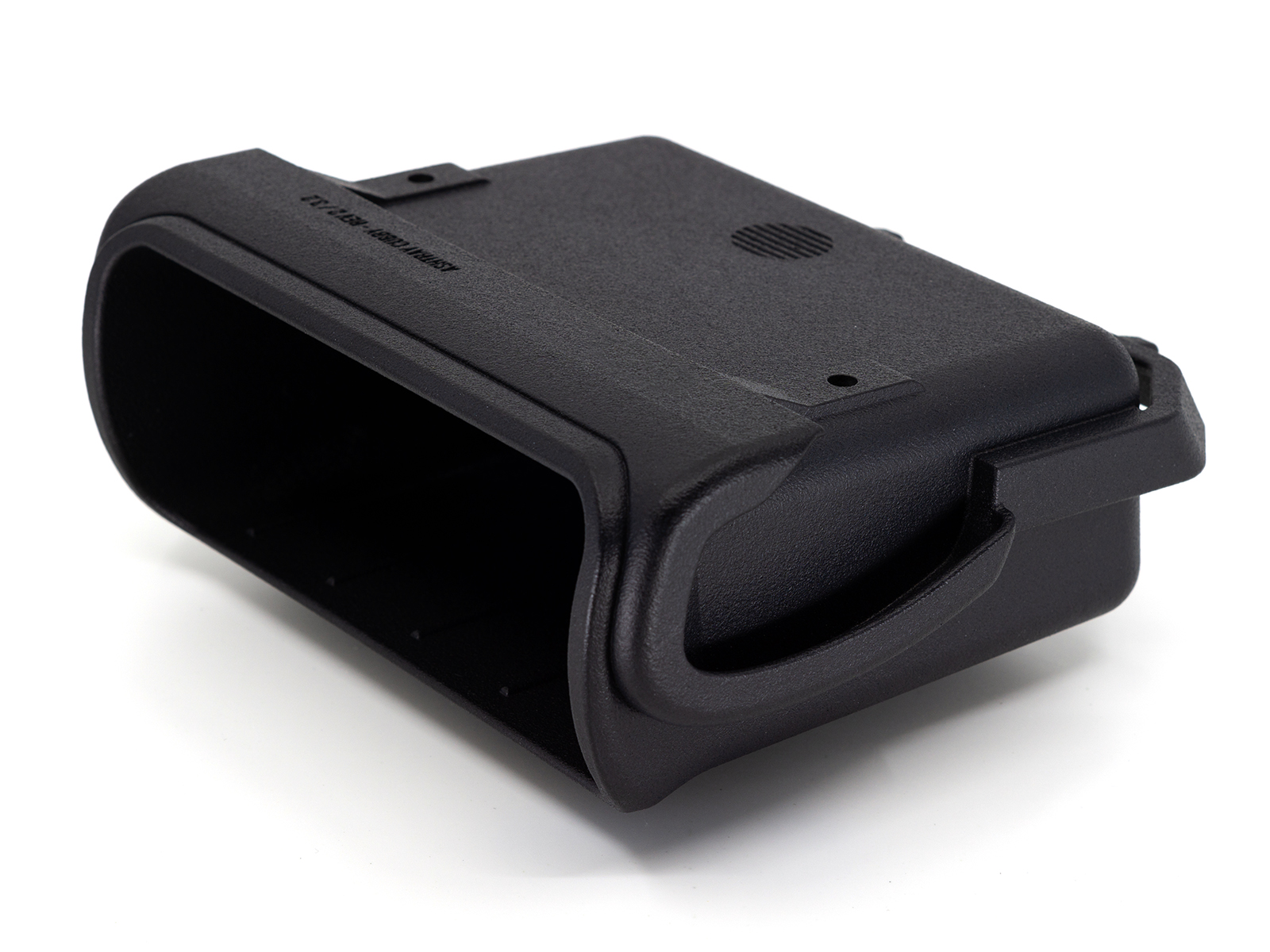 Manufactured from black PA12 nylon, the part offers excellent durability and a finish consistent with typical automotive interior plastics.