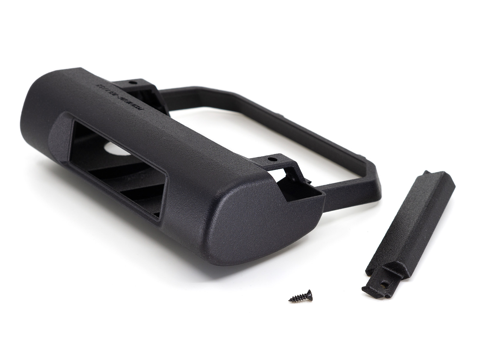 Manufactured from black PA12 nylon, the part offers excellent durability and a finish consistent with typical automotive interior plastics.