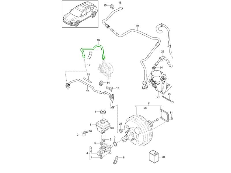 Brake Booster Vacuum Line.The Brake Booster Vacuum Line is a genuine Porsche braking system component designed to deliver vacuum pressure from the engine (or vacuum pump) to the brake servo/booster. This vacuum supply is essential for providing power-assisted braking, ensuring the brake pedal remains light and responsive during normal driving.