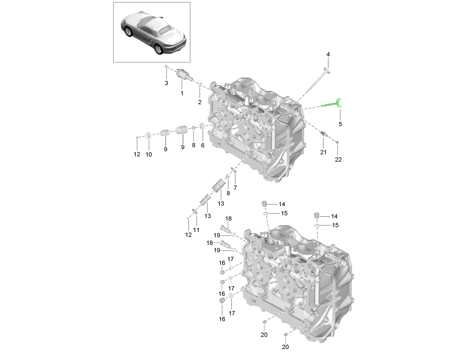 Engine exhaust valve setThis genuine Porsche OE Exhaust Valve Set is a complete set of 8 original exhaust valves designed for the 2.0L turbocharged flat-four engine used in Porsche 718 Boxster and Cayman (982) models. Manufactured to Porsche’s exact factory specifications, these valves ensure correct dimensions, material quality, and heat resistance required for high-performance engine operation.