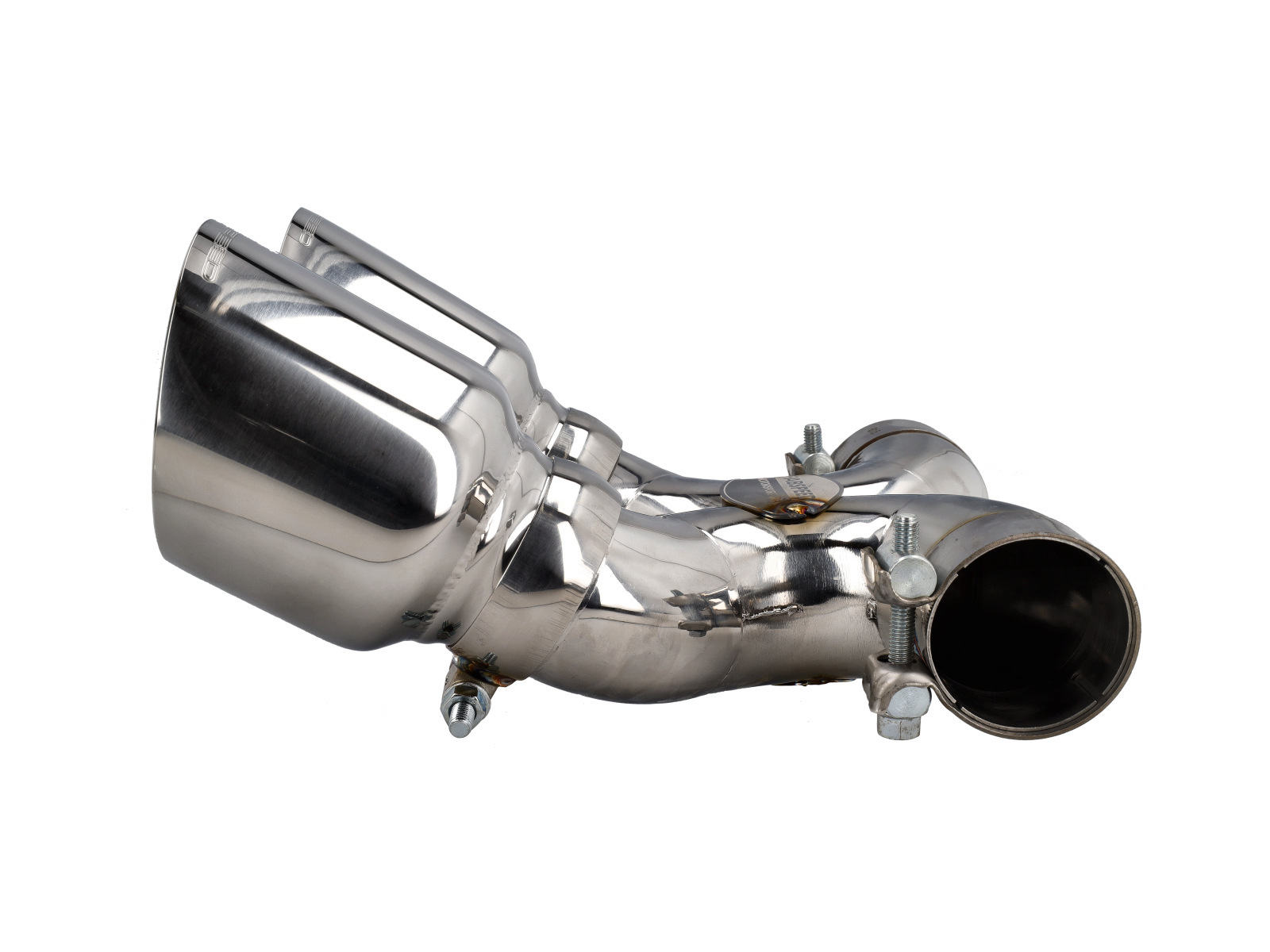 Stainless steel outlet tips replace the factory outlets for a sportier look.