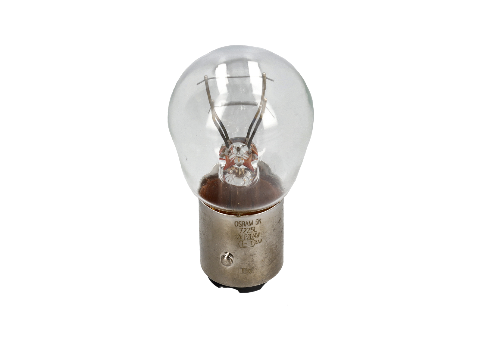 The Brake/Tail Light Bulb – 12V 21/4W, Offset Pins is a Osram dual-filament bulb designed for rear brake and tail light applications. Operating at 12 volts with a 21/4 watt configuration, this bulb provides two levels of illumination — lower intensity for tail lights and higher intensity for brake lights.