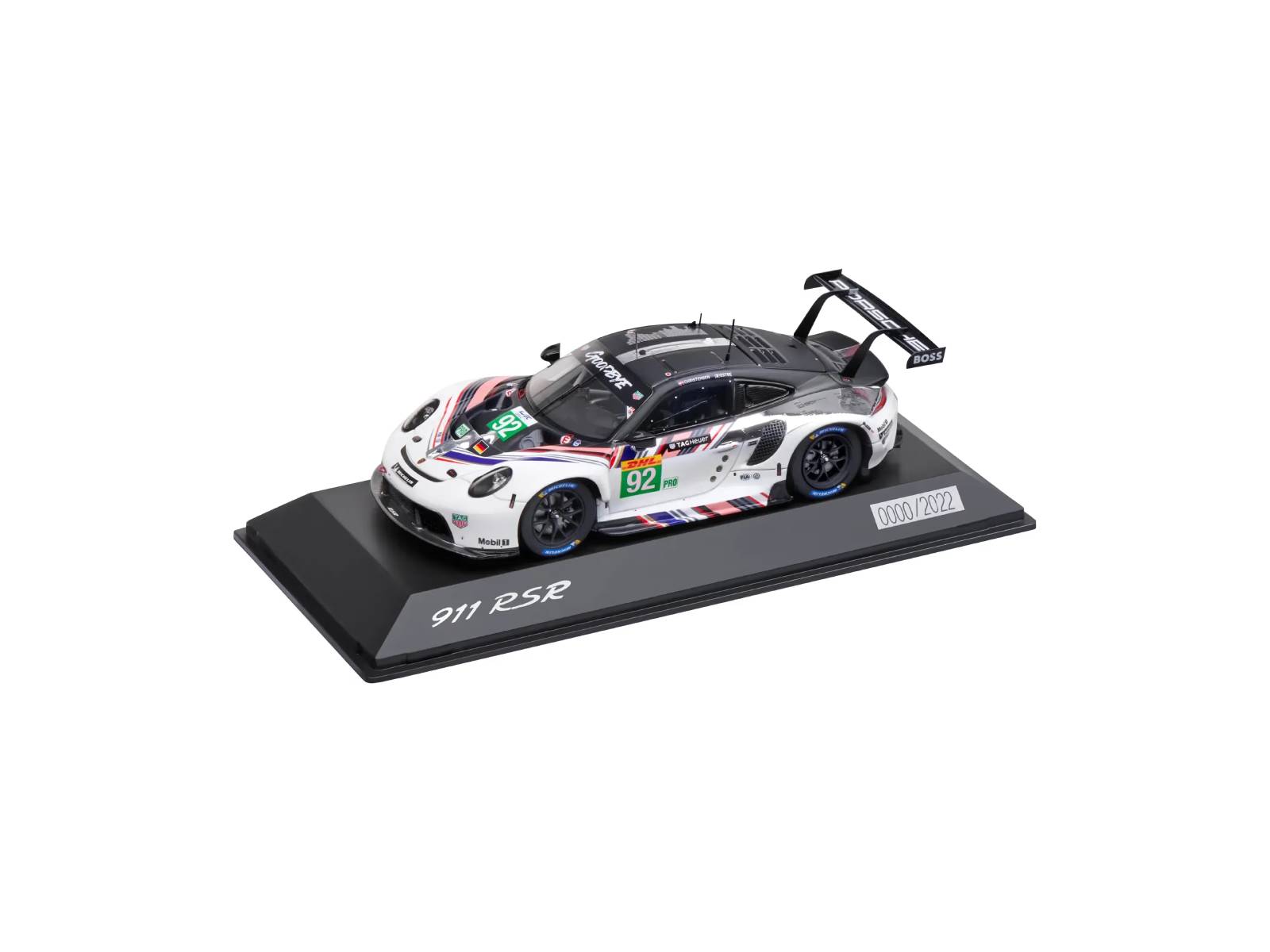 Celebrate Porsche’s racing legacy with the Porsche 911 RSR “Goodbye #92” Limited Model. This 1:43 scale resin collectible marks the farewell of Porsche’s iconic #92 RSR, paying tribute to its final appearance in the FIA WEC.