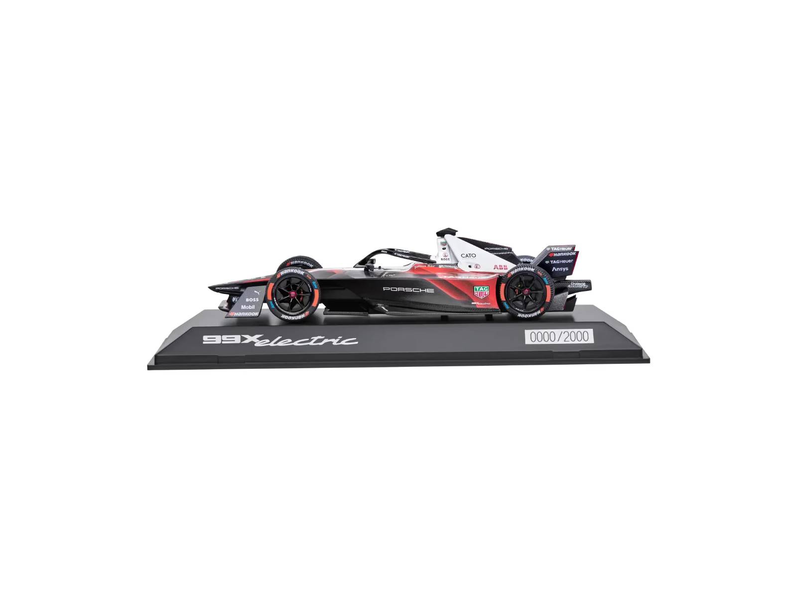Celebrate Porsche’s entry into electric motorsport with the Porsche 99X Electric Limited Model. This 1:43 scale resin replica represents the Gen3 Formula E launch version of the Porsche 99X Electric, finished in a striking black, red, and white livery with a sleek black interior.