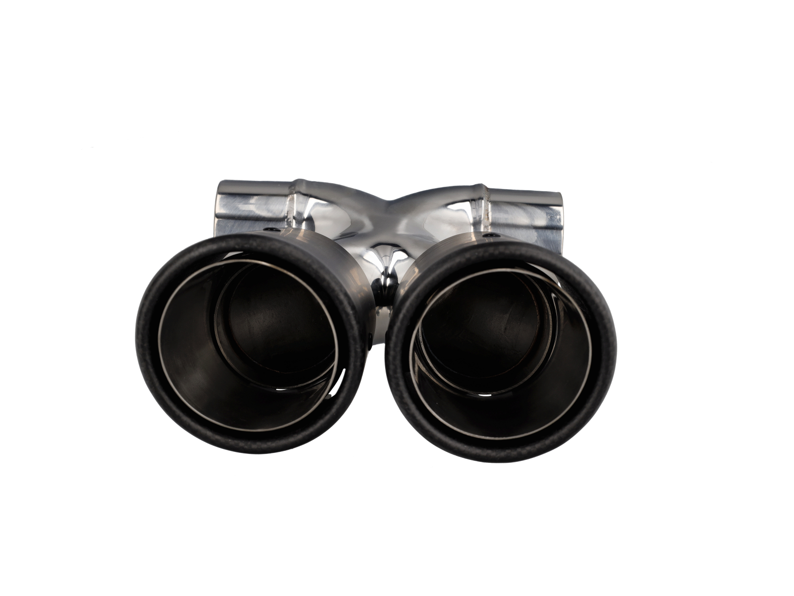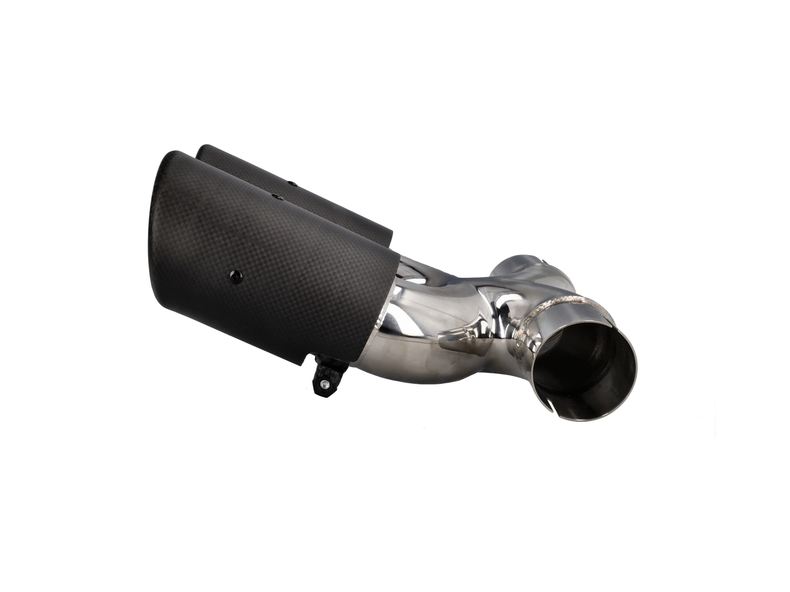2 twin tailpipes in unique design, high-gloss, chrome palted.
