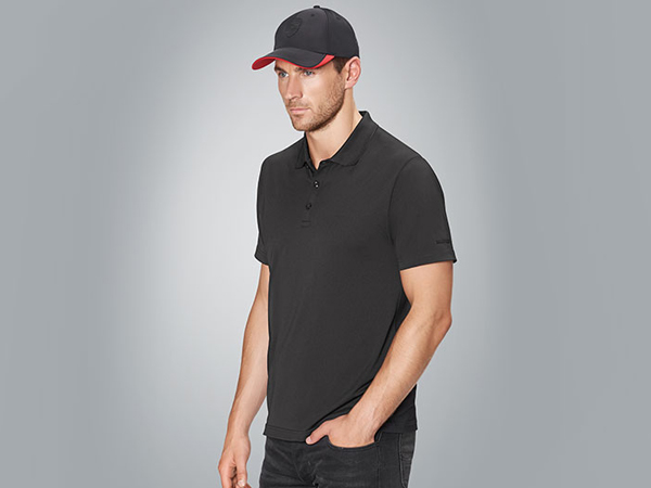 Baseball cap with Black Porsche Crest rubber badge on the front and on the peak's red underside. Clip fastener