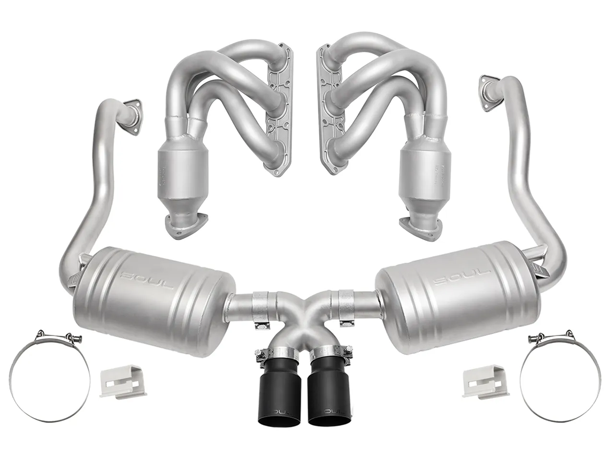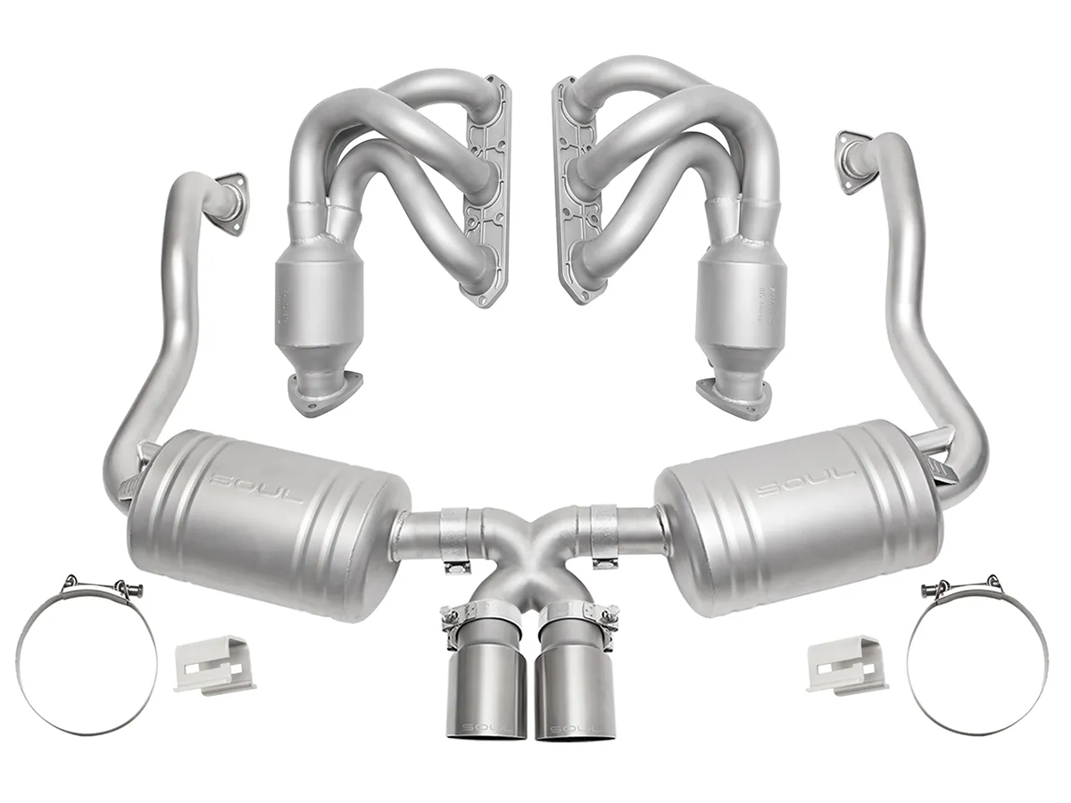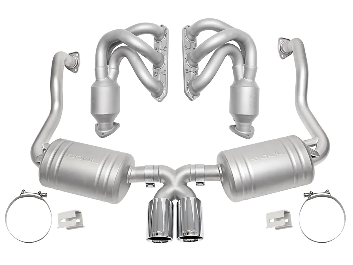The SOUL 986 Street Exhaust Package upgrades your factory system with a precision-engineered header and exhaust setup that boosts power while delivering an aggressive yet refined Porsche sound. Premium high-flow catalytic converters ensure clean performance without triggering check engine lights.
