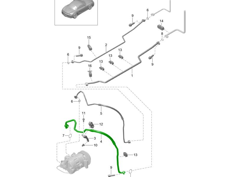 The suction line for the underbody compressor is a key component of the vehicle’s air conditioning (A/C) system, responsible for transporting low-pressure refrigerant gas from the evaporator to the compressor. Designed to OE specifications, this line ensures efficient refrigerant flow within the system, supporting optimal cooling performance.