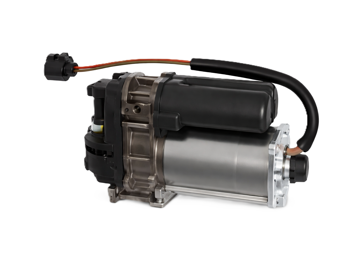 The suspension air compressor is a vital component of the air suspension system used in Porsche vehicles such as the Porsche 9J1.1 Taycan. This electric compressor supplies pressurised air to the air suspension system, allowing the vehicle to automatically adjust ride height and maintain optimal suspension performance.