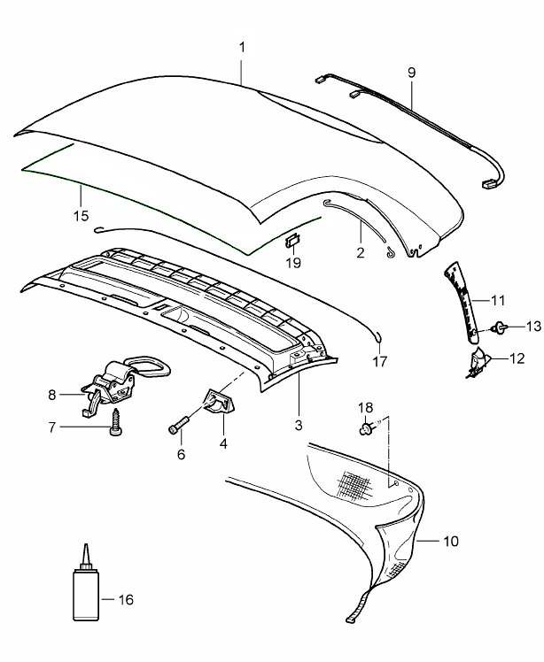 Ready-to-fit soft top without frame, seals and headliner - which are to be reused.