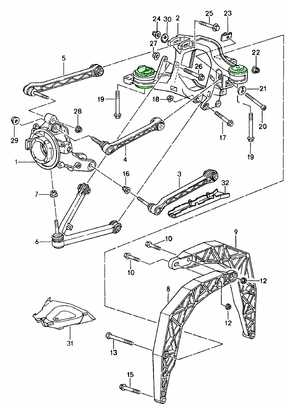If you're serious about how your 993, 996, 997, Cayman, or Boxster handles, you should upgrade the rear suspension with adjustable control arm links. There are two major drawbacks to the factory links: 1) You can't lower your car and maintain proper suspension geometry. The factory links create too much toe-in, which cannot be adjusted out, creating handling problems and excessive tire wear. 2) The factory links have rubber bushings, which make handling imprecise, especially in performance driving when suspension loads are highest.