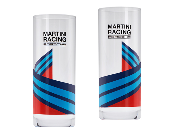 Porsche Longdrink Glasses – MARTINI RACING® CollectionTwo-piece set of long drink glasses – MARTINI RACING® High-quality lead crystal glasses [machine-blown] in MARTINI RACING® design. Glass and refinement: motifs in the MARTINI RACING® colours.