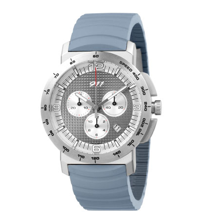 Silver dial. Base colour: Silver. Rubber strap in Silver Grey. Luminescent hands, stopwatch function with split-time measurement and tachometer. Extra-hard sapphire glass with anti-reflection treatment to ensure clear visibility. Integrated rubber watchstrap with stainless steel fastener.