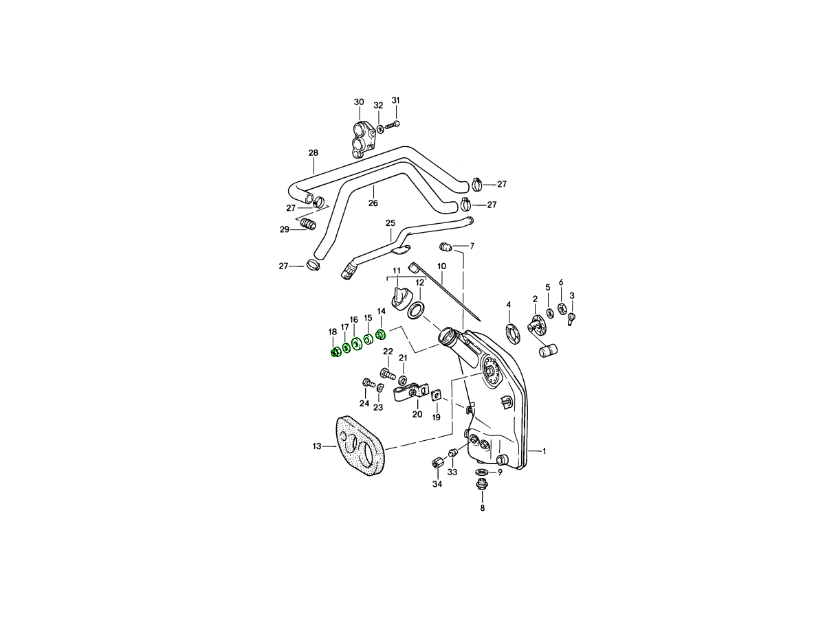 The oil tank mounting kit for Porsche 911 (1965–89) and 914-6 provides all essential hardware required to securely install and stabilise the oil tank within the dry-sump lubrication system. This complete kit includes mounting washers (90110769200 / 90110769301), cap (90110766100), washer (90015100802) and nut (90008400402)—all crafted to match the precise dimensions and performance characteristics of the original components.