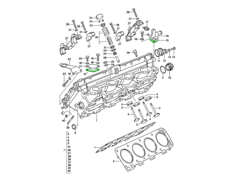 The Porsche Cylinder Head End Cap / Coolant Outlet Gasket is a genuine OEM seal designed for the coolant flange connection on the cylinder head. This gasket ensures a leak-free joint between the cylinder head and the coolant outlet housing or hose flange, preventing coolant loss and maintaining proper engine temperature regulation.