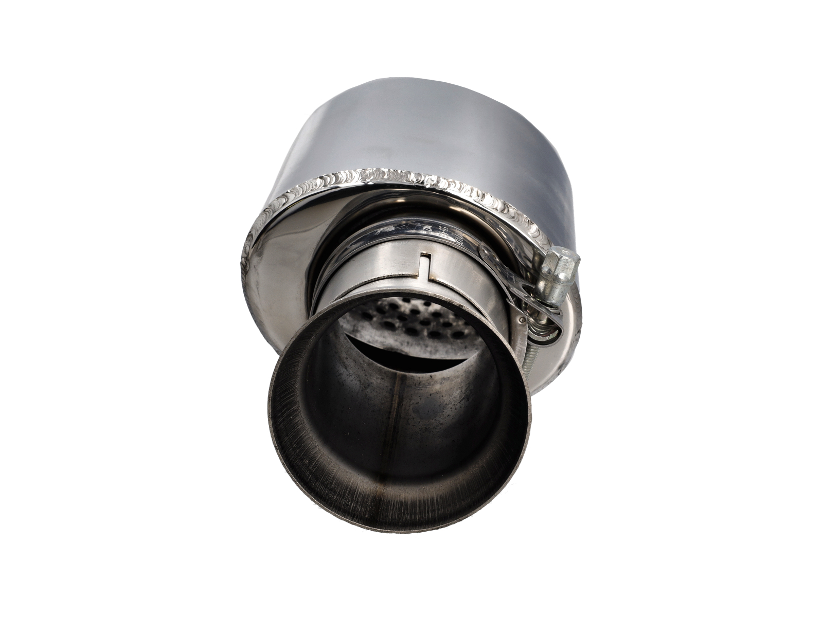 • CARGRAPHIC Sport tailpipe 115x85mm oval, slash cut, double wall with perforated insert - Mirror polished