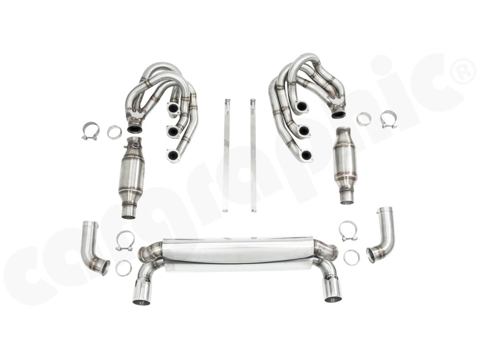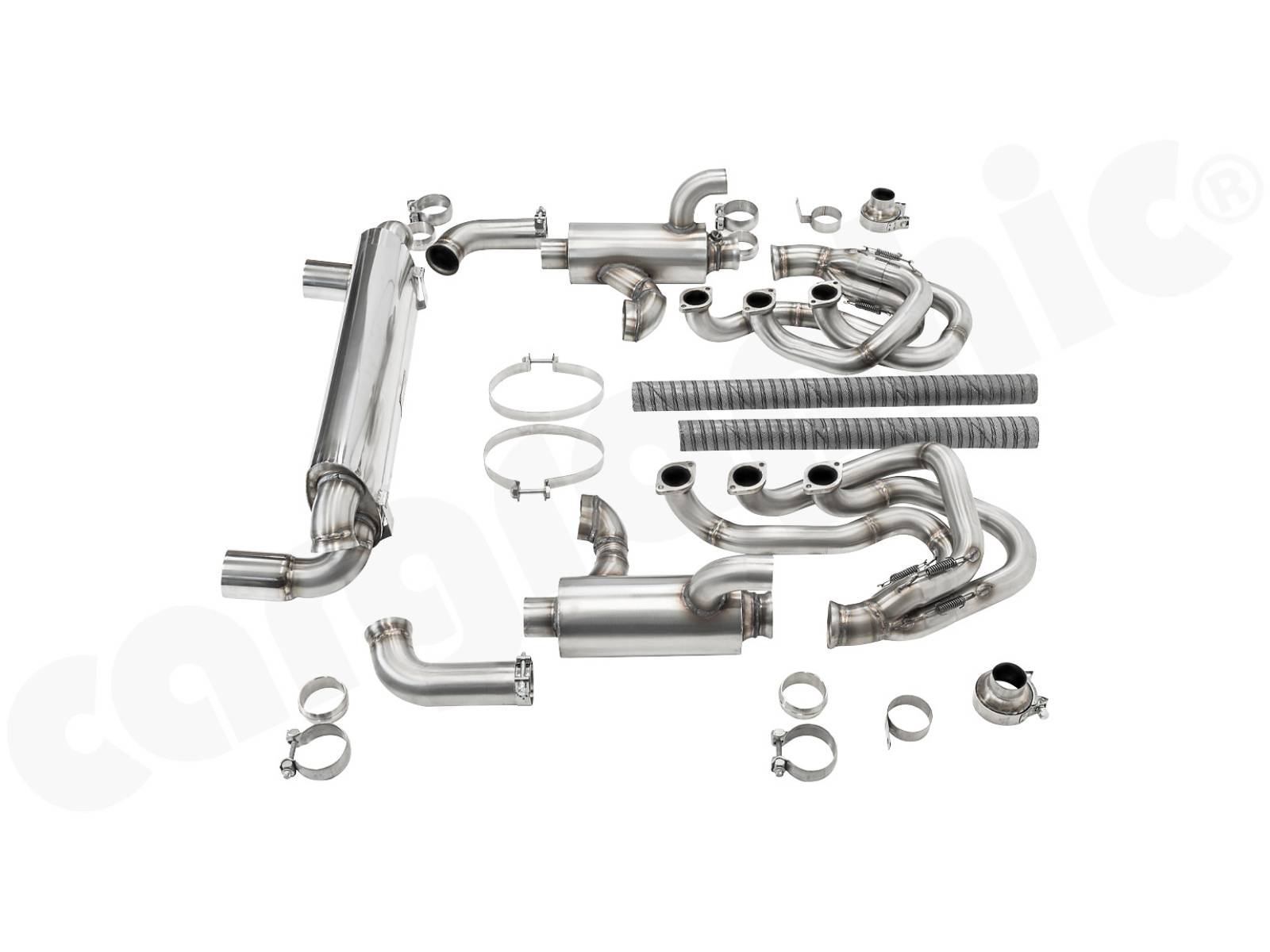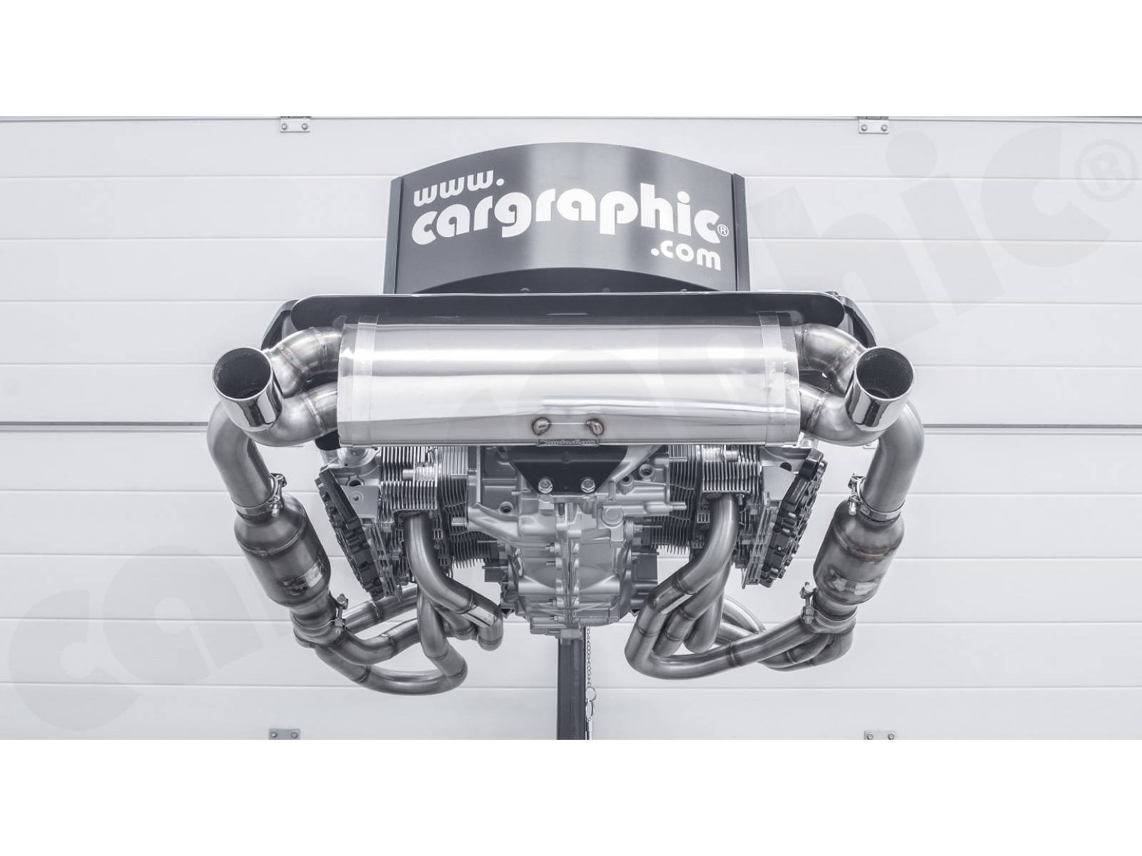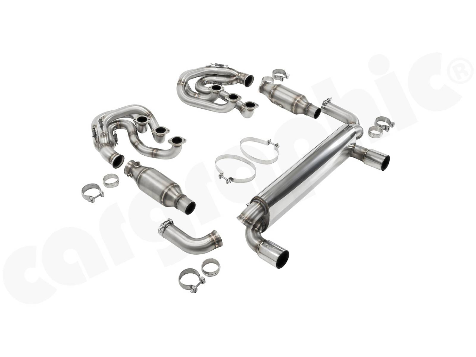 CARGRAPHIC GT Sport Exhaust System Backdate with ID45 GT manifold Set, with / without 200cpsi catalytic converter, with heating and dual flow AQ rear silencer with LH and RH tailpipe exit Backdate / RSR-Look.