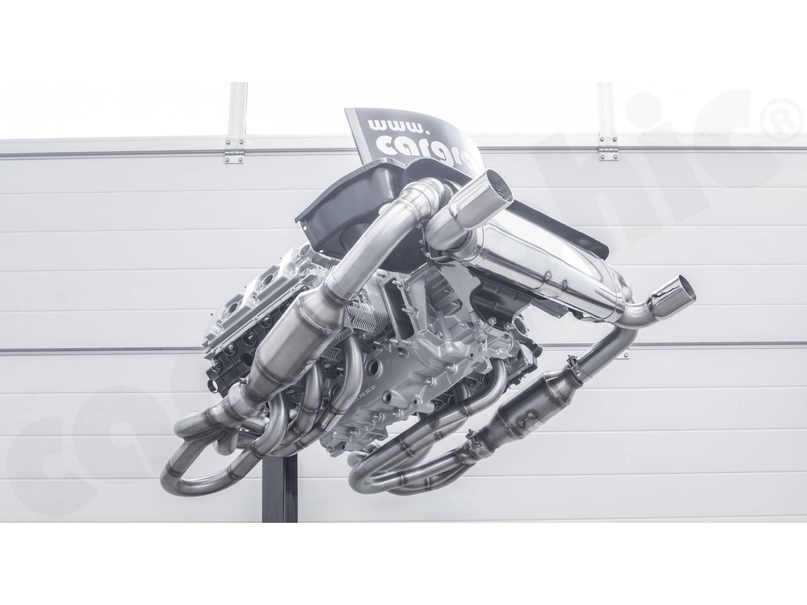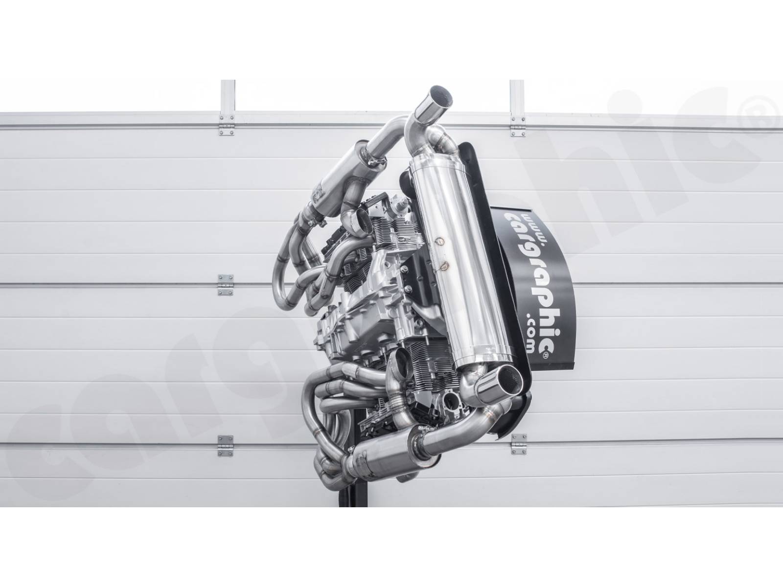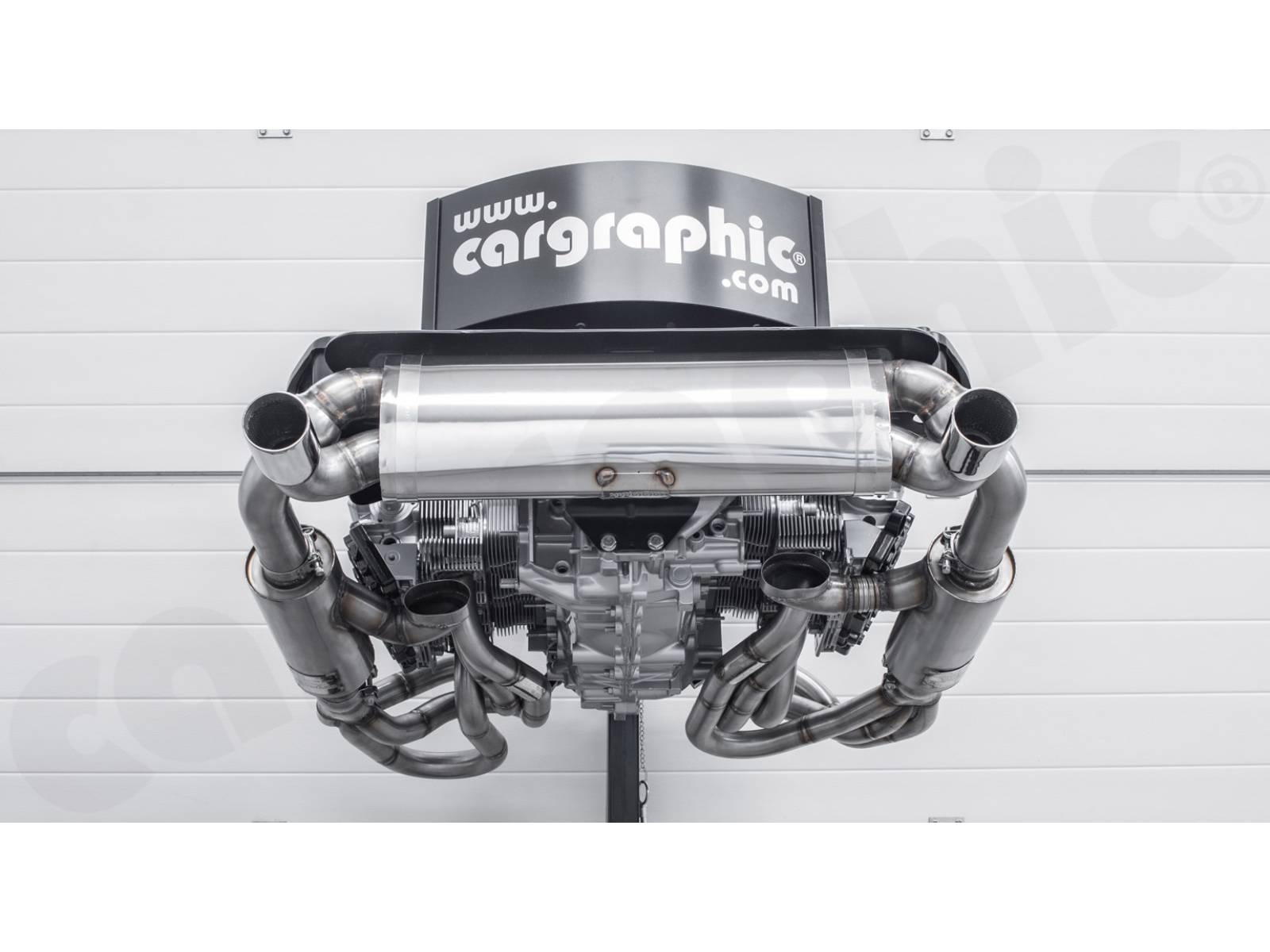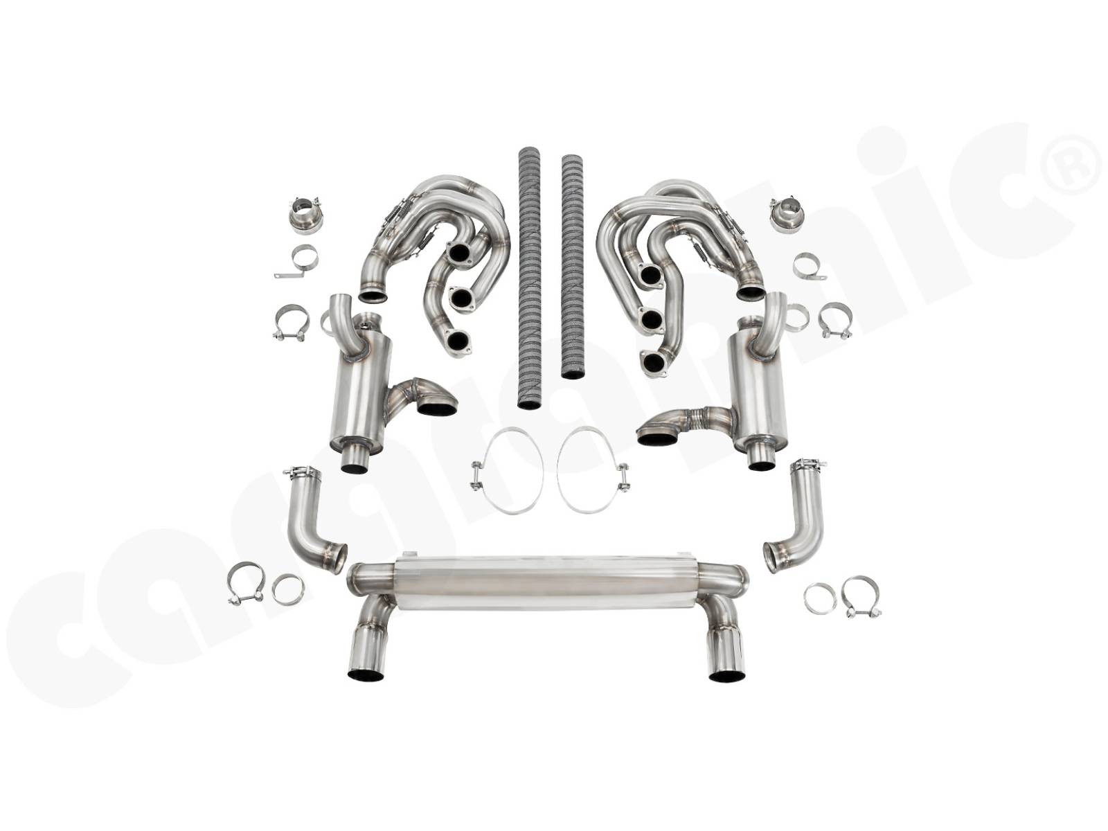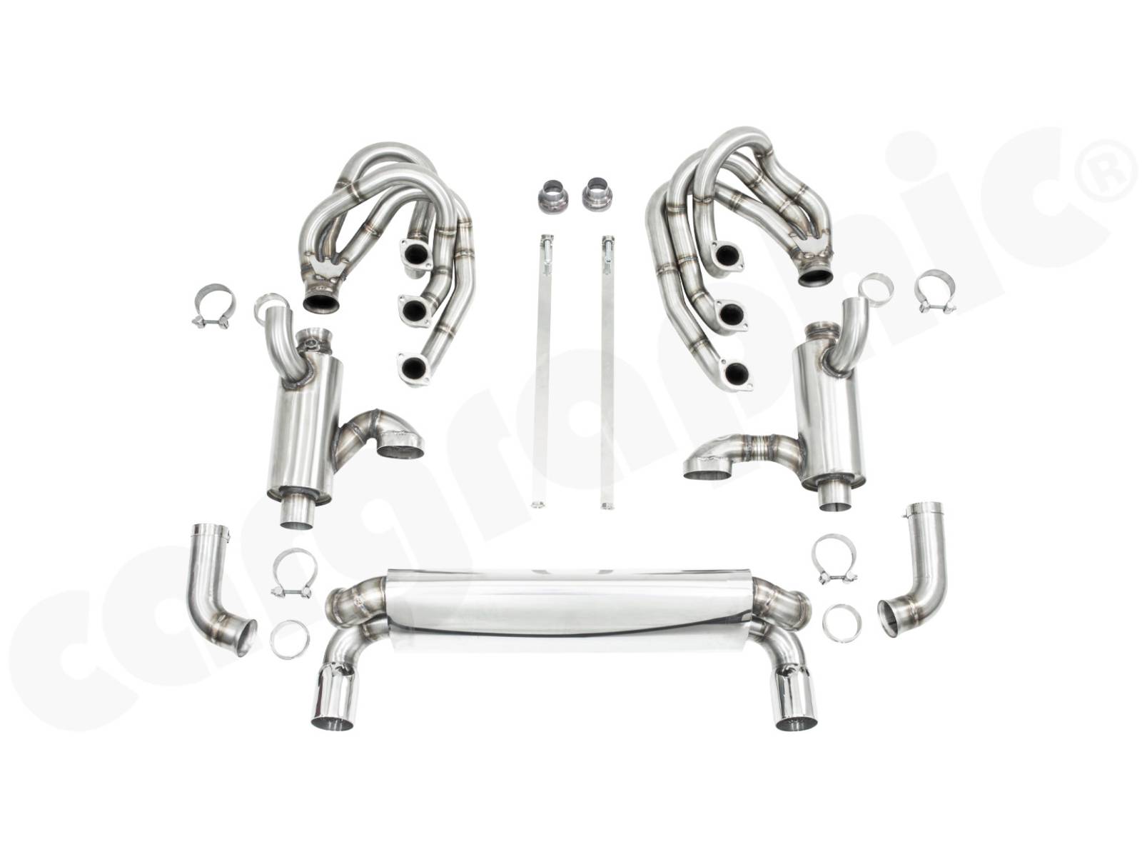 CARGRAPHIC GT Sport Exhaust System Backdate with ID45 GT manifold Set, with / without 200cpsi catalytic converter, with heating and dual flow AQ rear silencer with LH and RH tailpipe exit Backdate / RSR-Look.