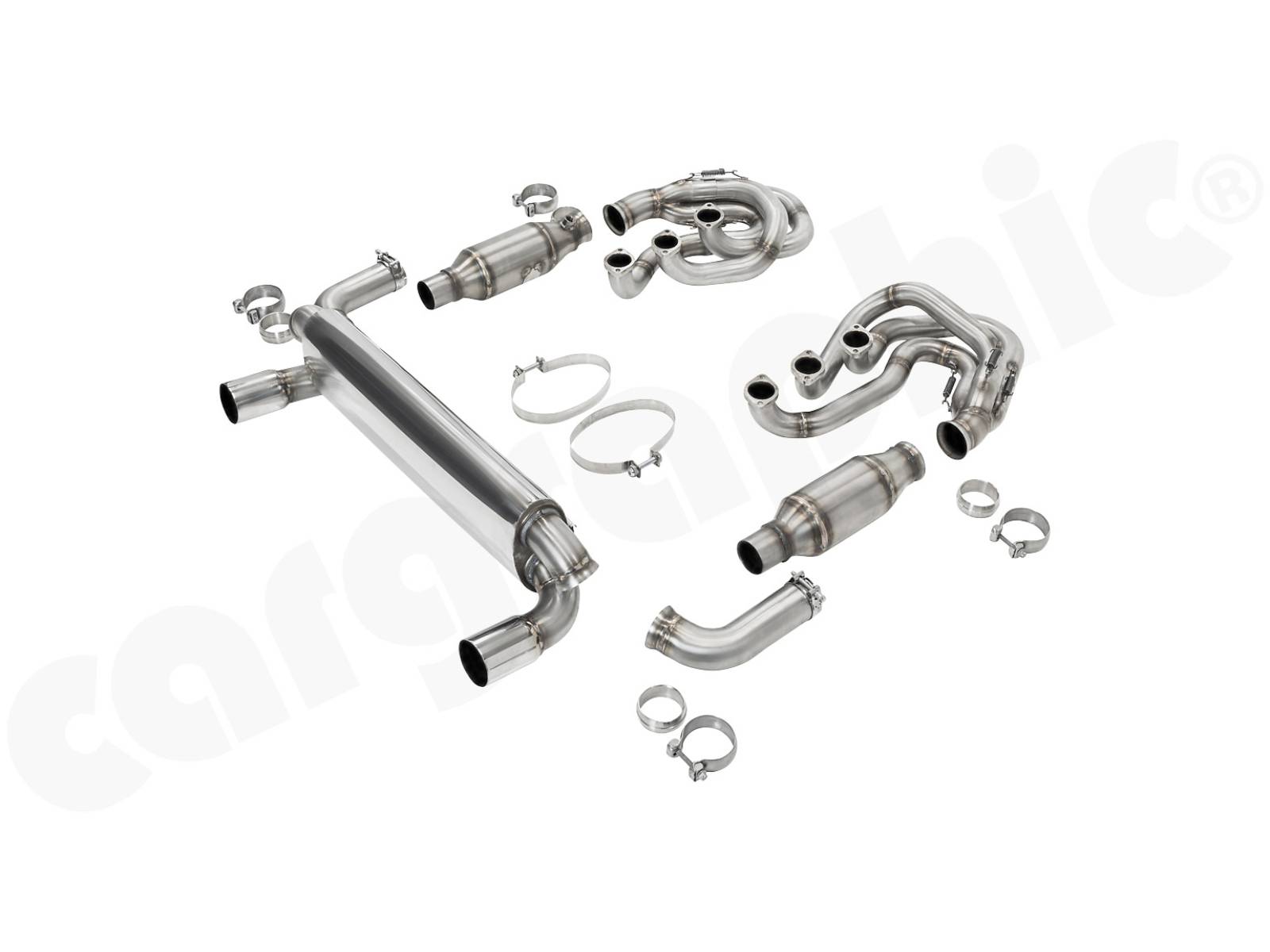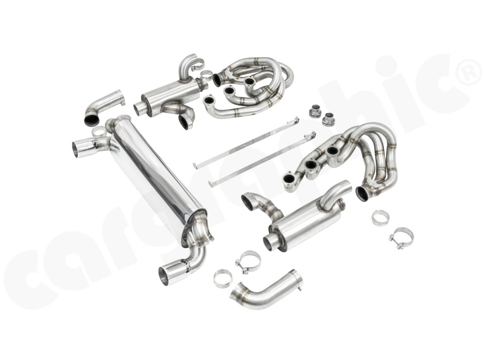 CARGRAPHIC GT Sport Exhaust System Backdate with ID42 GT manifold set, with / without 200cpsi catalytic converter, with heating and dual flow AQ rear silencer with LH and RH tailpipe exit Backdate / RSR-Look.