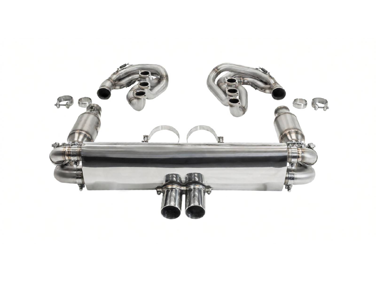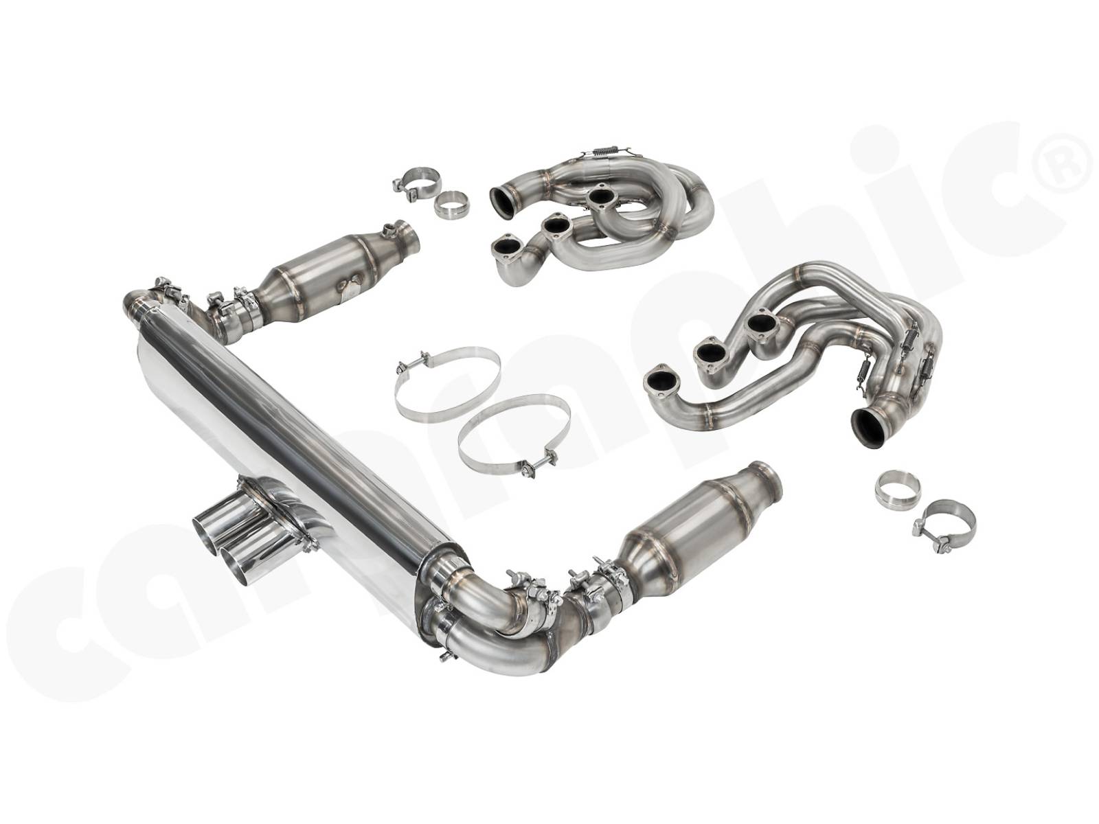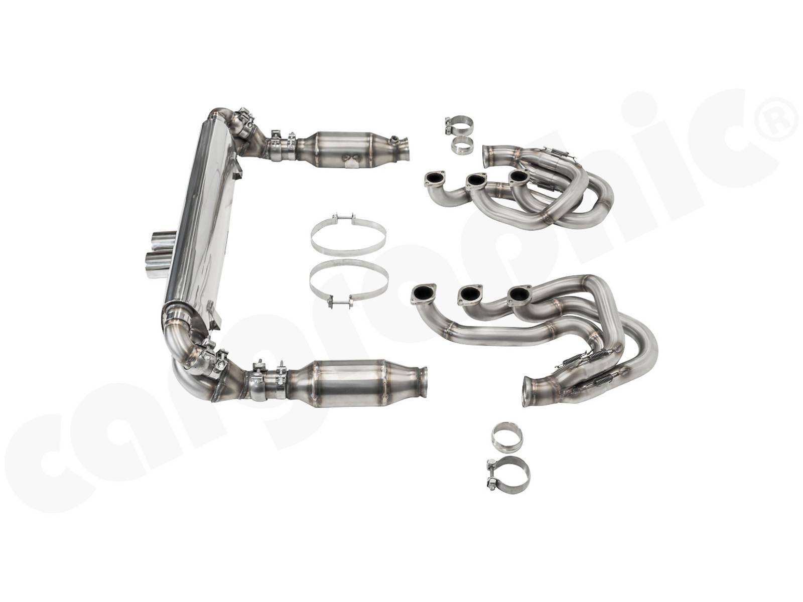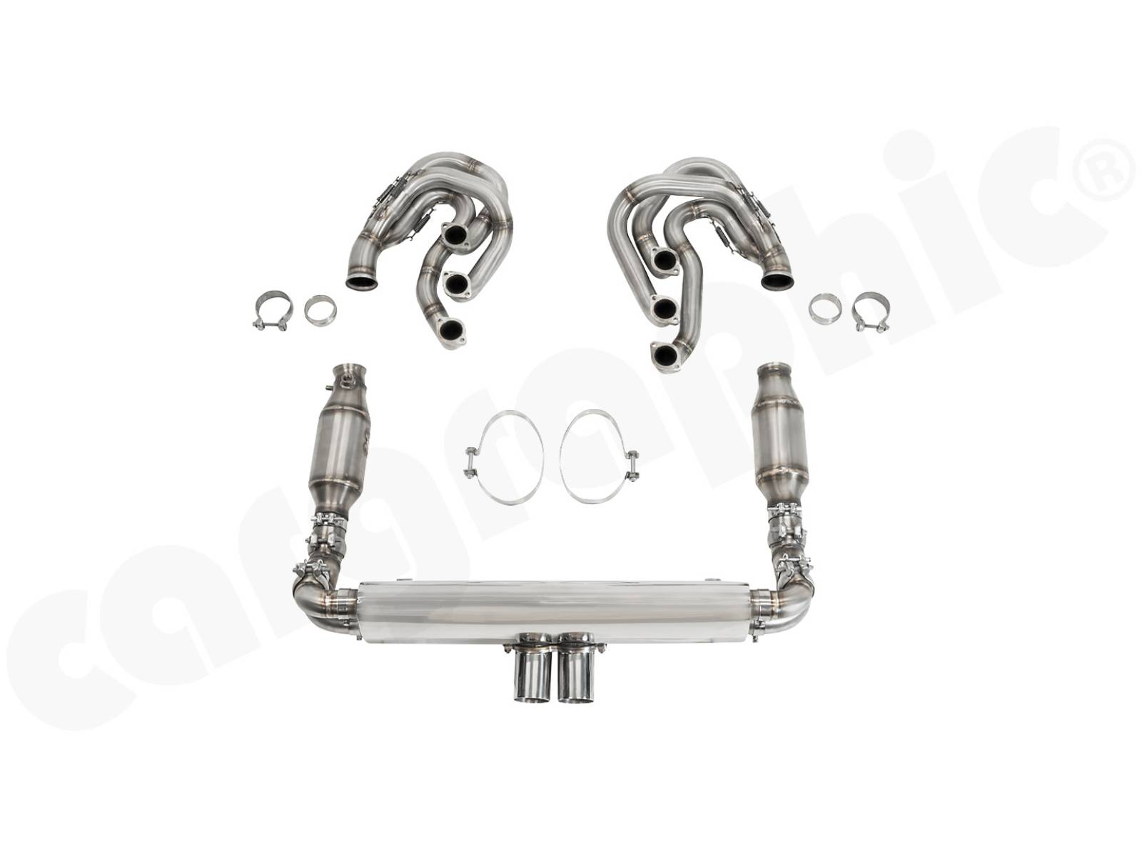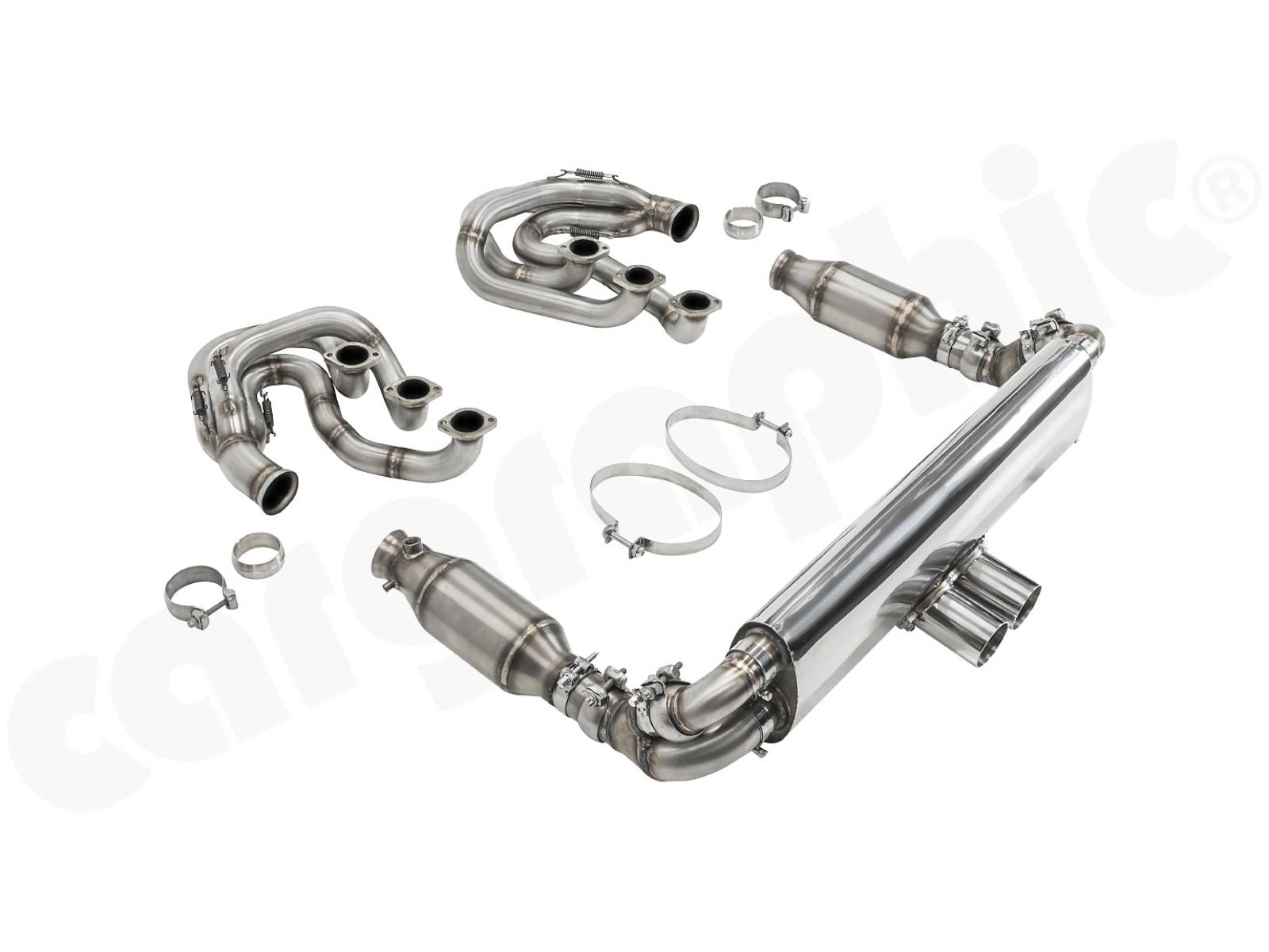 CARGRAPHIC GT Sport Exhaust System Backdate with ID42 GT manifold set, with / without 2x200cpsi catalytic converters, with heating, exhaust valves and 4>2 flow rear silencer with center outlet 2x70mm GT3 Look.