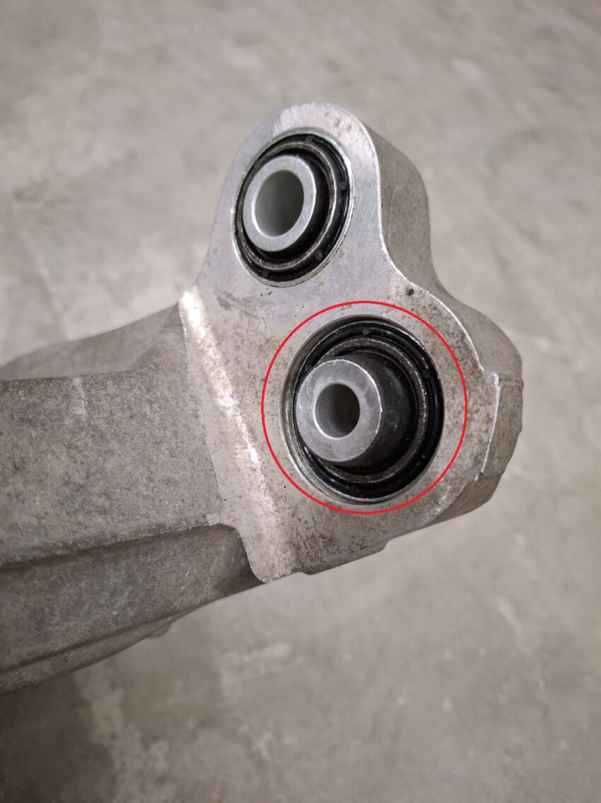 Over time, suspension bushes can age, harden, or deteriorate due to heat, load cycles, and environmental exposure. Worn bushes may allow excess play in the rear wheel carrier, leading to: