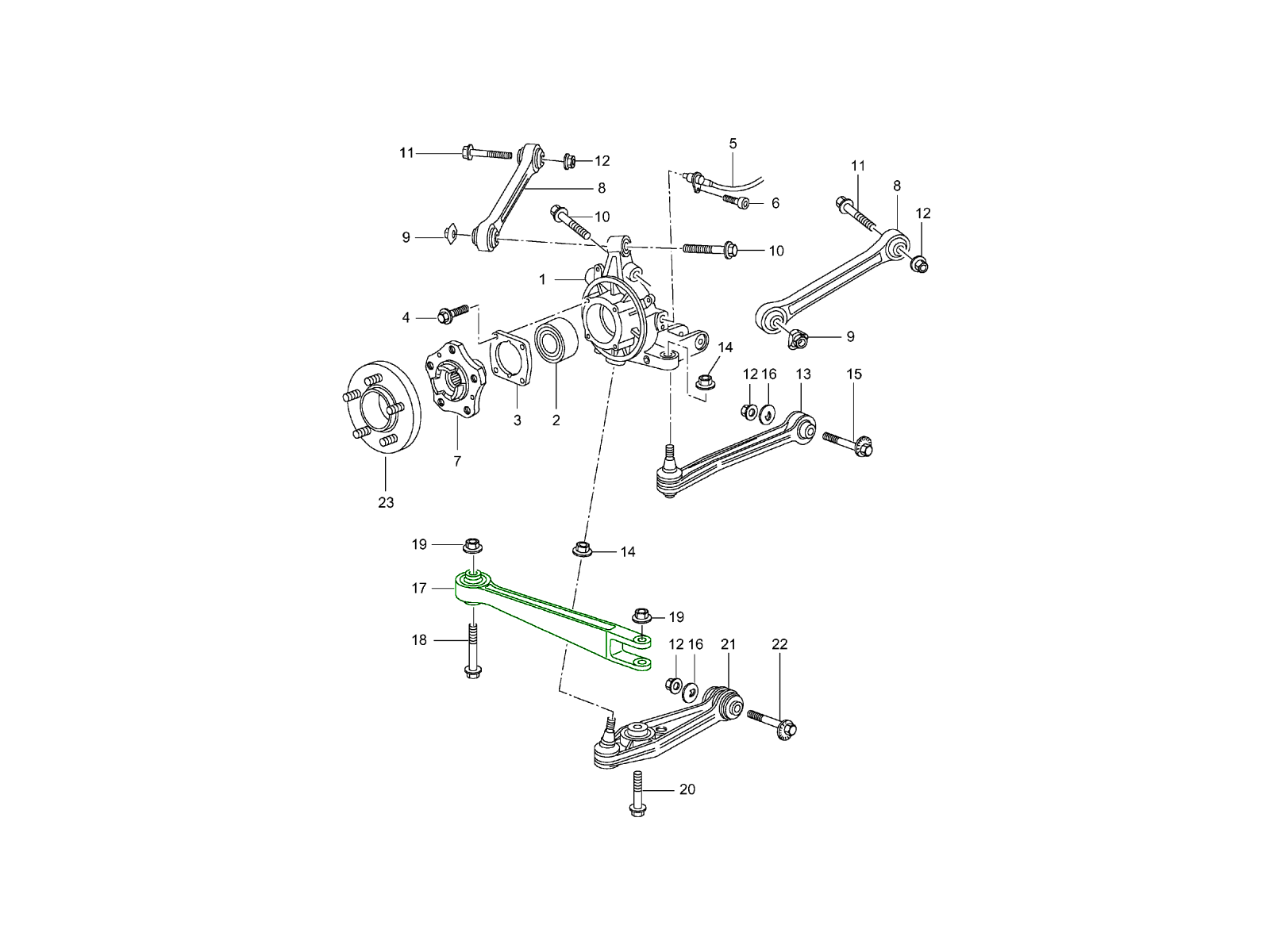 rear axle, wheel carrier, control arm, wheel hub 996 1998-05 501-00