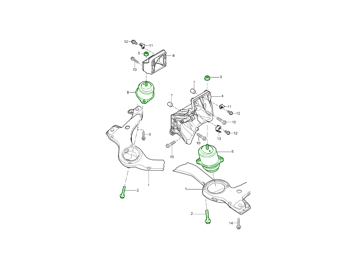 This complete engine mount and hardware kit includes left and right OE Match engine