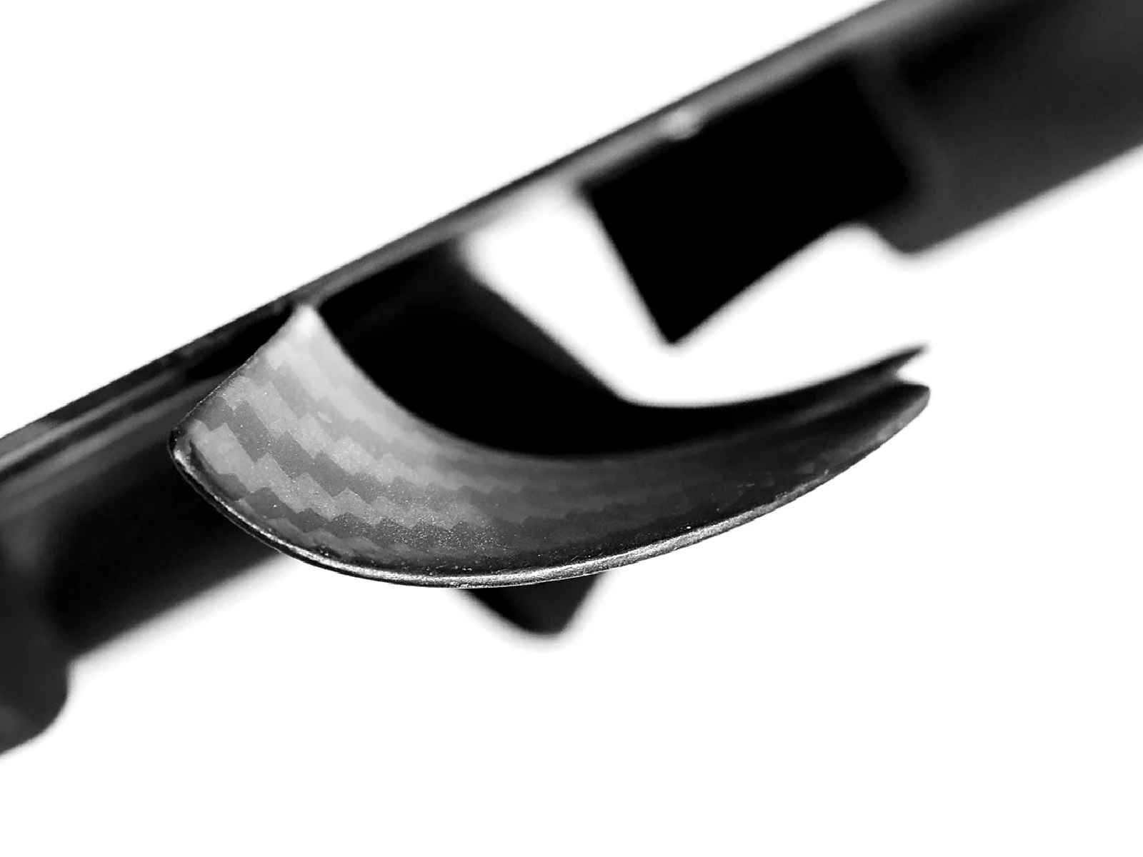 Flex-Carbon Structure: In traditional wings, aluminum inner structures are used at the mounting points, however, in the SR Flex-Carbon Wing, aluminum has been replaced with the SR Flex-Carbon structure, reducing the weight by another 1.5kg. Mostly importantly, the flex-carbon structure provides unparalleled flexibility, similar to that seen in the McLaren F1 Flex Wing.
