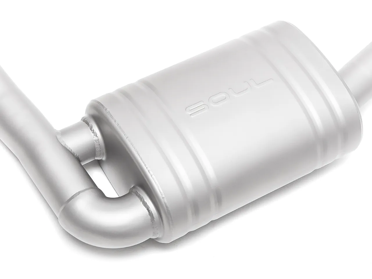 For the 981 platform, we engineered a system with properly sized 2” runners and optimized collectors to unlock maximum power from the 3.4L engine, while still delivering impressive gains on the 2.7L. We selected high-flow catalytic converters sized for both performance and durability—avoiding the compromises of smaller, cheaper alternatives. The result is a superior exhaust that delivers a broad spectrum of sound: valves open reveal a CUP car–inspired roar, while valves closed provide a refined, drone-free tone. Thanks to SOUL mufflers, even with aftermarket headers the exhaust remains composed and reserved when the valves are shut.