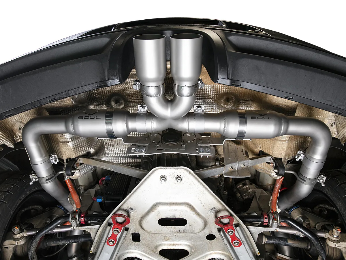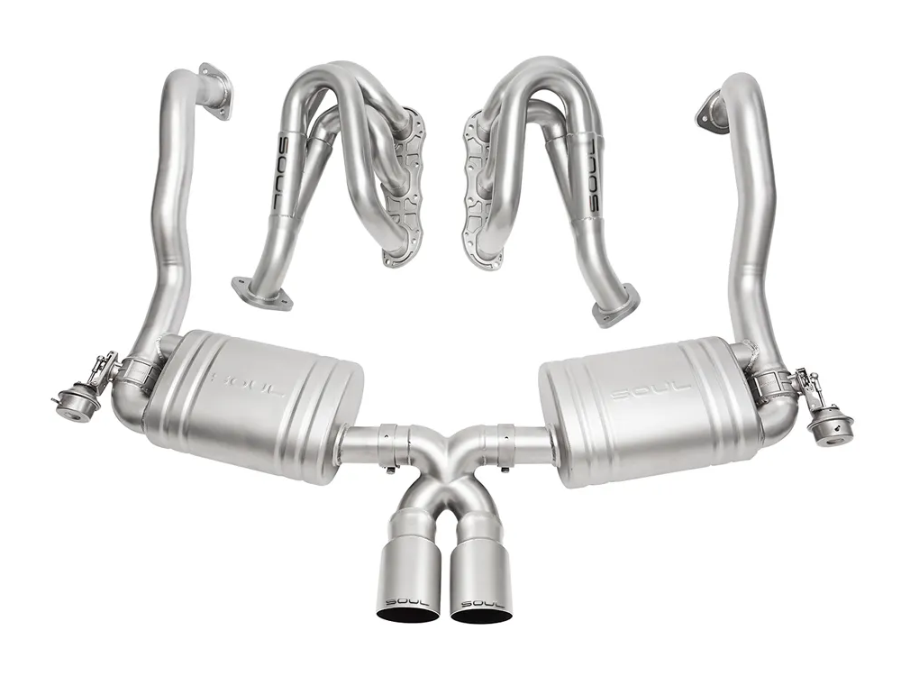 The Soul Performance Products Competition Package for the Porsche 981 Boxster and Cayman is engineered by enthusiasts, for enthusiasts. By combining the superior flow of SOUL Competition Headers with the x-pipe efficiency of the Valved Exhaust System, we’ve created the ultimate balance of performance, sound, and drivability—perfect for both street and track use. With the valves closed, the exhaust note remains refined and comfortable, ideal for daily driving without fatigue from excess volume or drone. Open the valves, and the system unleashes the flat-six engine’s raw character—delivering an intoxicating, aggressive symphony that commands attention as it exits through your choice of stylish exhaust tips.