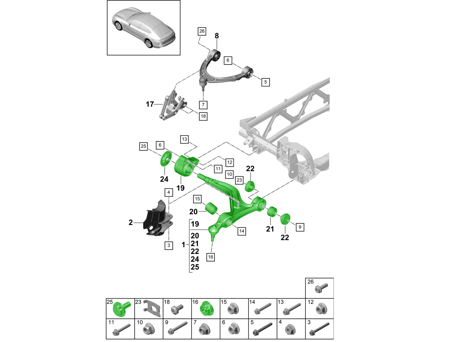 and all associated bushings, ball joints, and factory-style mounting hardware needed for a professional installation.