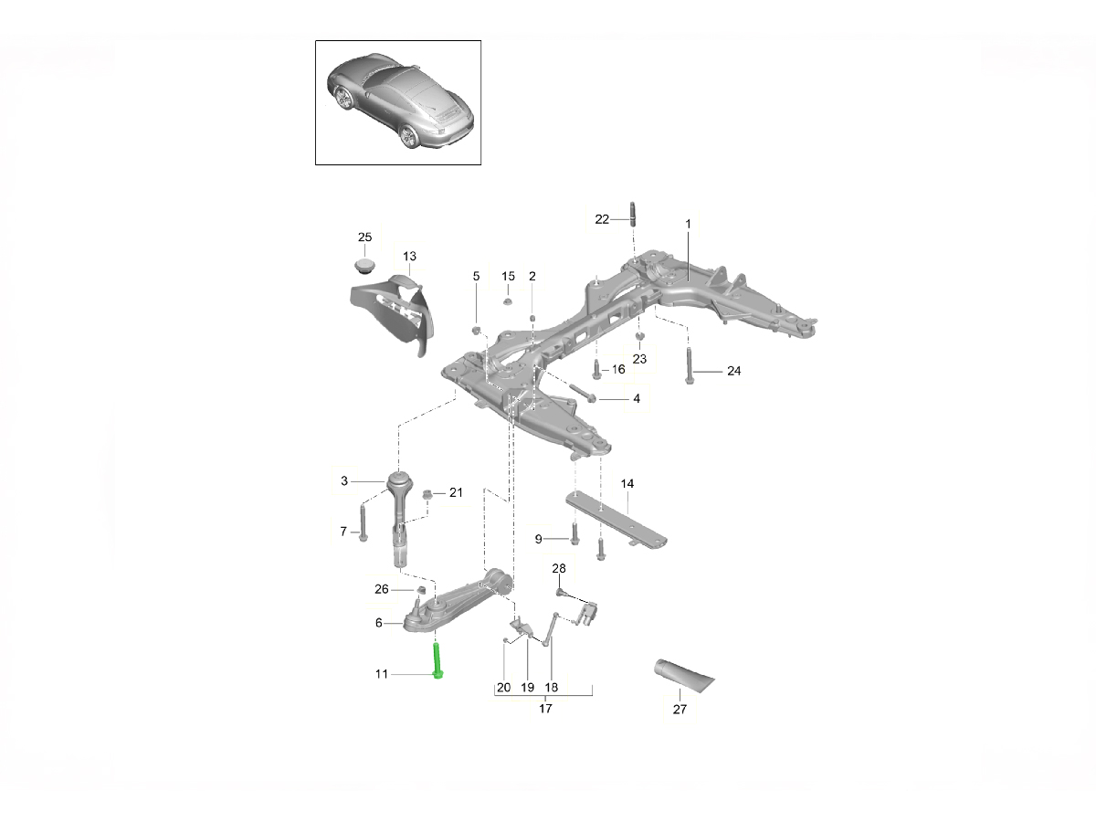 This bolt is used in many Porsche models, including the 911, 718 Boxster, and 718 Cayman, depending on the suspension configuration. Whether you're performing routine maintenance, replacing a control arm, or performing a steering repair, which is crucial for maintaining wheel alignment, installing the correct bolt helps maintain your vehicle's handling, safety, and long-term reliability.