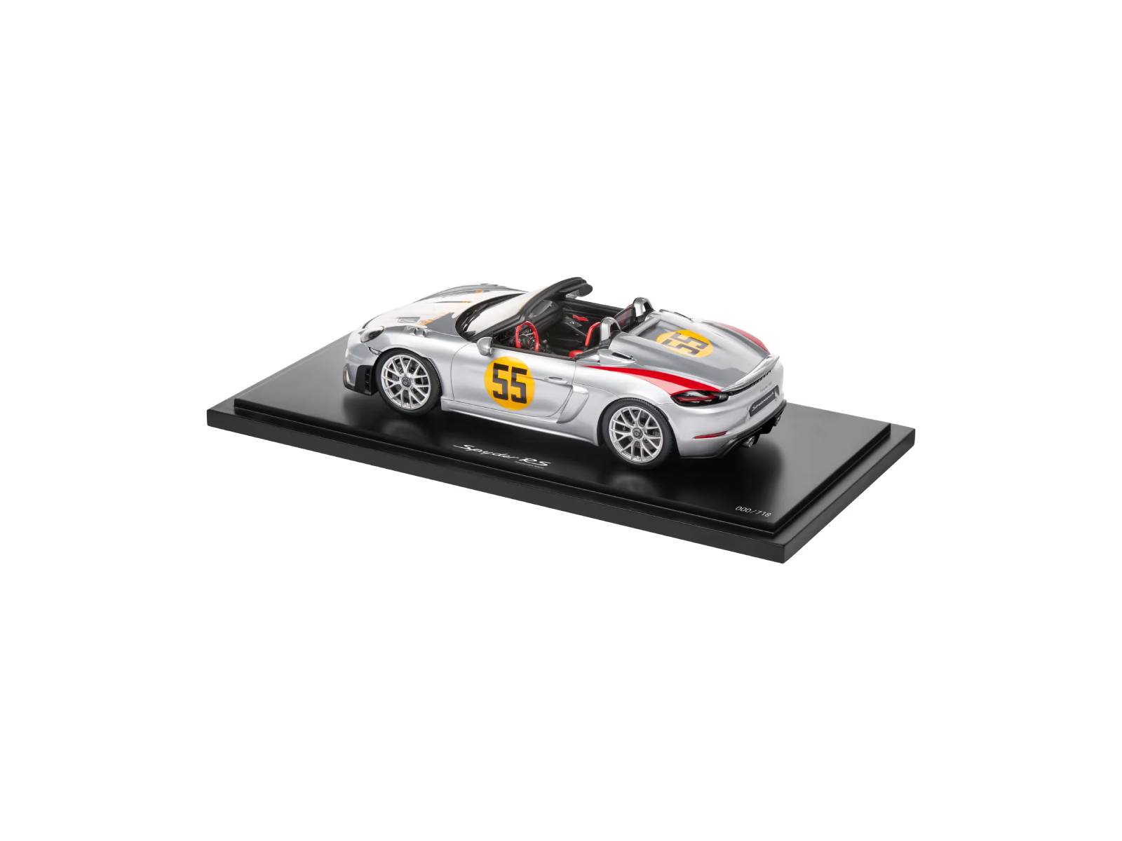 - The 718 Spyder RS continues the legacy of Porsche’s lightweight, mid-engine sports cars that dominated racing in the 1950s and 60s. Owning this model is a way to celebrate that enduring racing spirit — distilled into a finely crafted collectible.