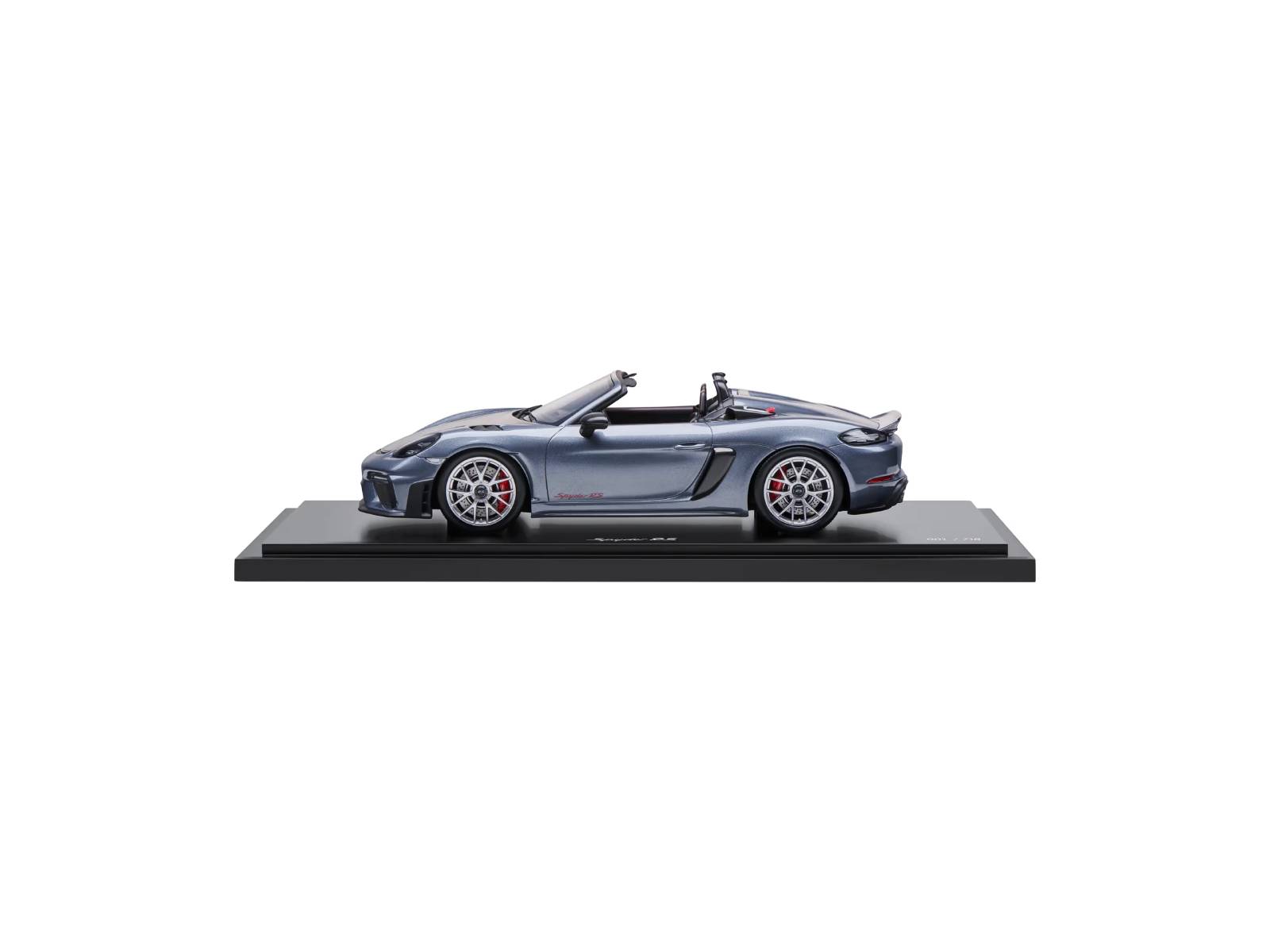 A must-have for Porsche enthusiasts and collectors: the Porsche 718 Spyder RS (982) in Grey Metallic, produced in 1:43 scale.